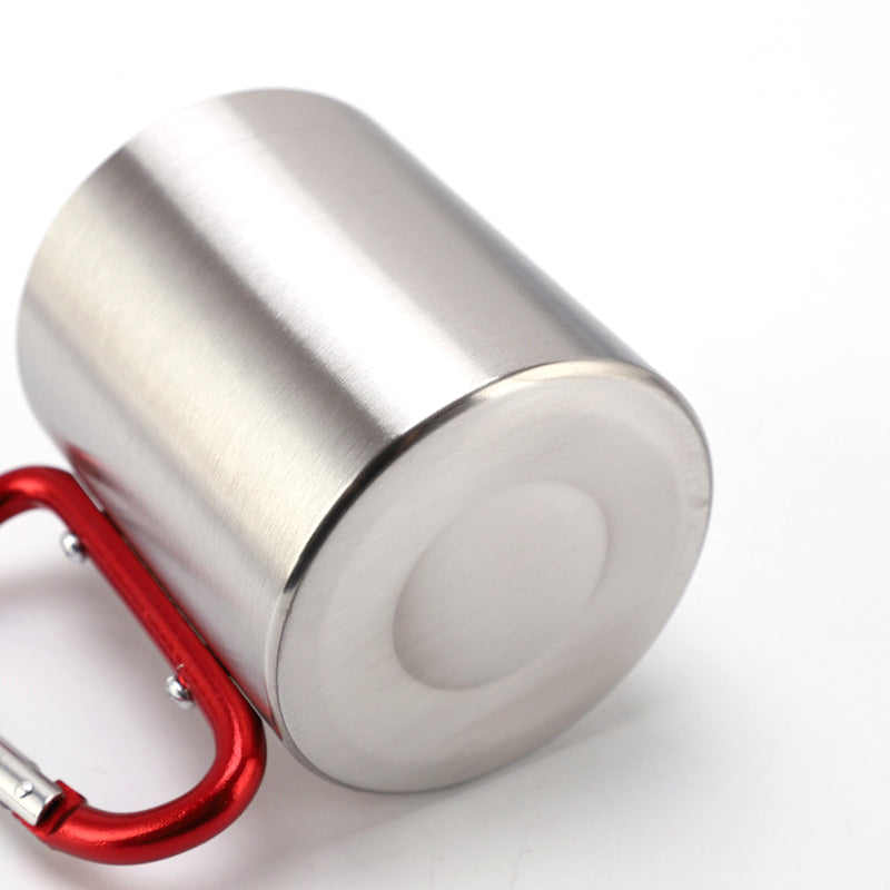 220ML Stainless Steel Camping Mug Portable Outdoor Hiking Coffee Cup Drinks Cup with Carabiner (No FDA Certification)