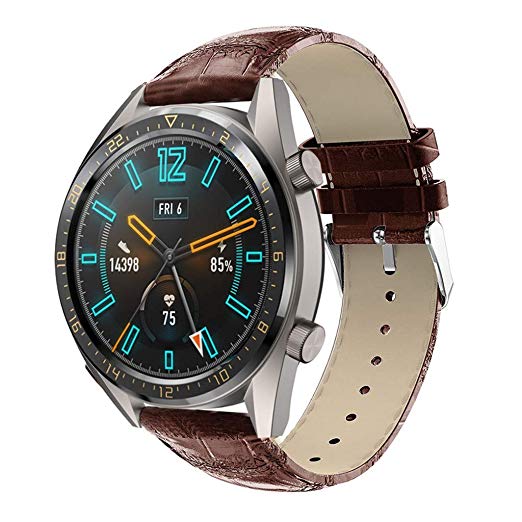 22mm Crocodile Texture Genuine Leather Smart Watch Band Replacement for Huawei Watch GT2e/GT2 46mm
