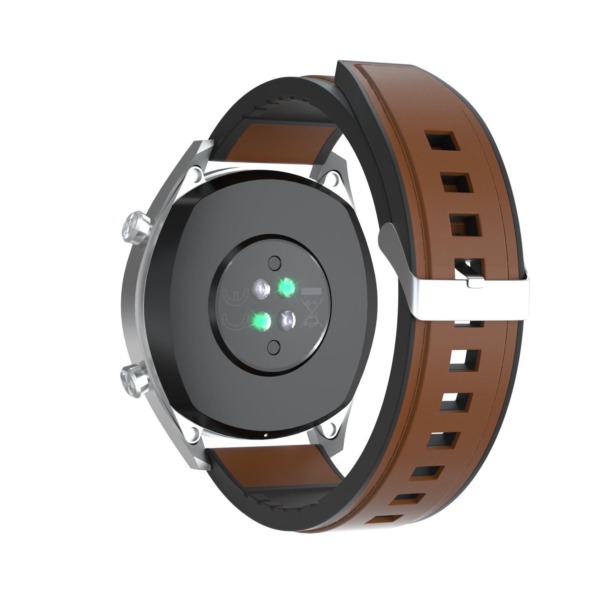 22mm Genuine Leather Coated Silicone Watchband Strap Silver Buckle for Huawei Watch GT