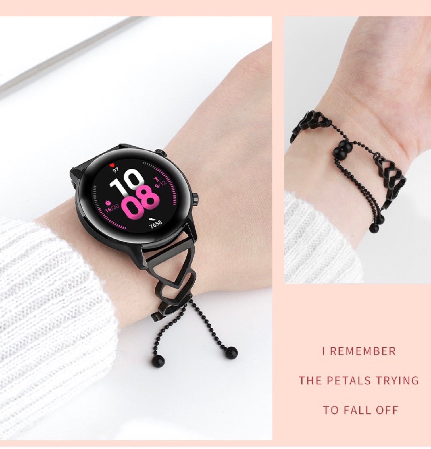 22mm Love Shape Bracelet Stainless Steel Watchband Strap for Garmin Vivoactive 4/Venu 2/Samsung Galaxy Watch 3 45mm