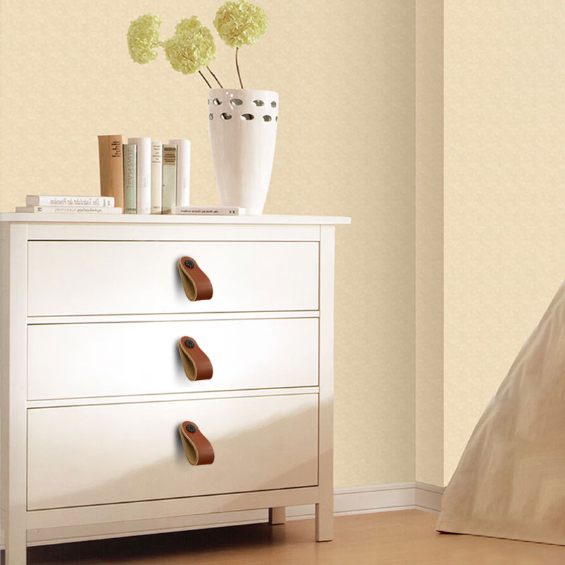 - The cabinet pulls are made of PU leather. The handle part is solid very sturdy and durable after easy installation