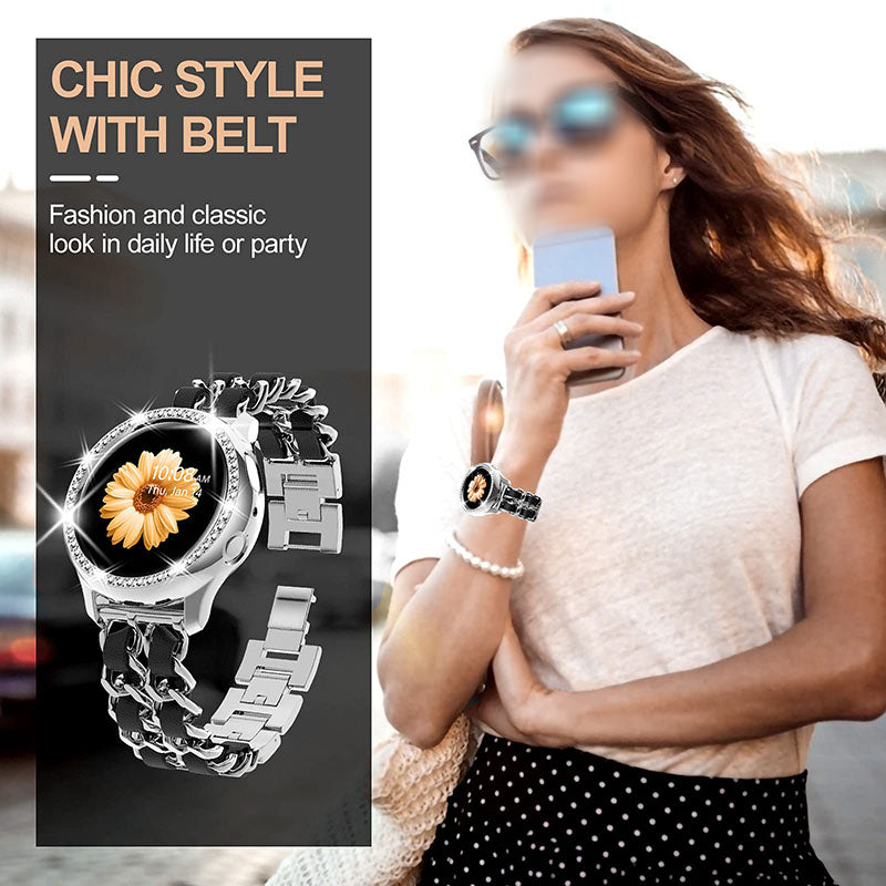 - High-quality PU leather and stainless steel intertwined chain strap, looks gorgeous and fashionable