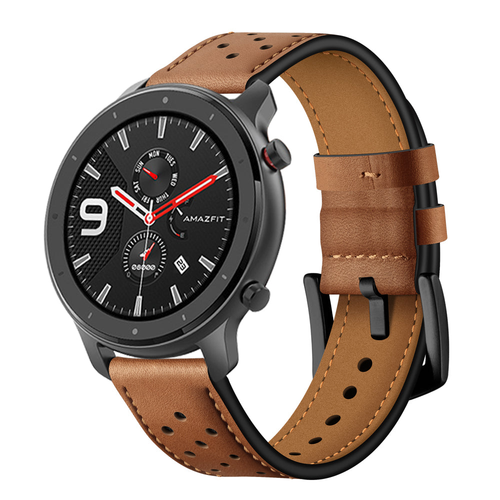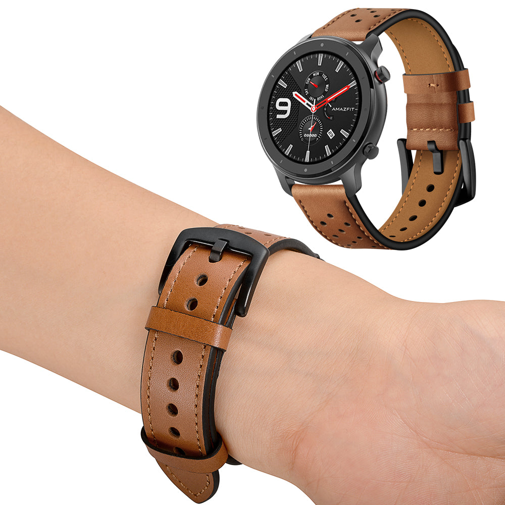 22mm Stitching Decor Top-layer Genuine Leather Smart Watch Band Replacement for Huami Amazfit GTR 47mm