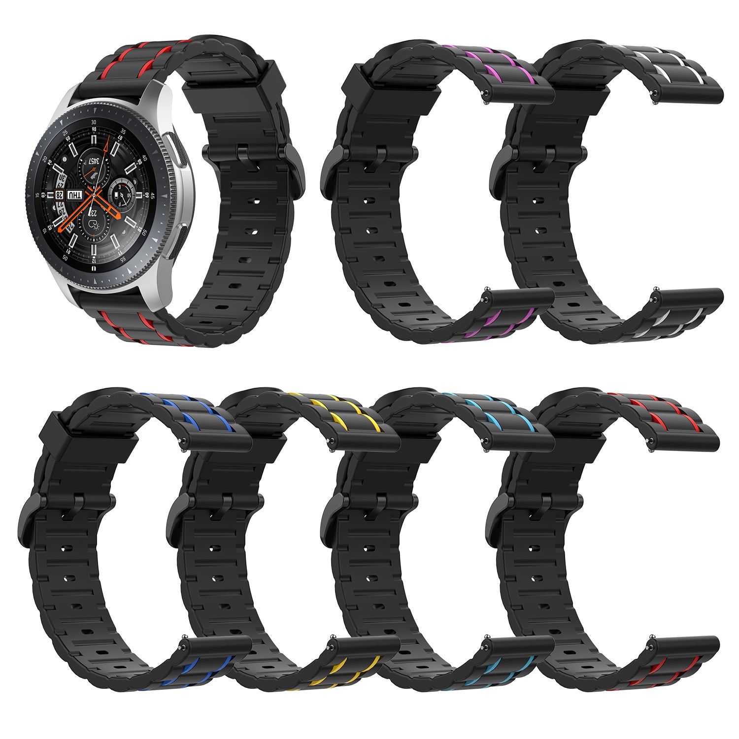 22mm Vertical Stripe Bi-color Silicone Watch Strap for Samsung Galaxy Watch 46mm/Galaxy Watch 3 45mm
