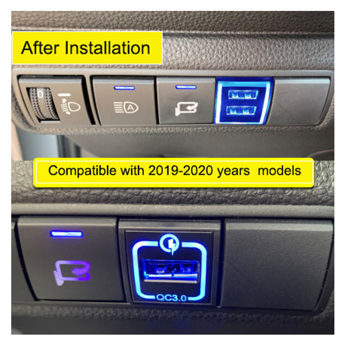 - Car modified special charger socket for Toyota 2018-1019, support QC3.0 fast charging, input voltage 12-24V, output voltage 5V 3.1A/9V 2A/12V 1.5A