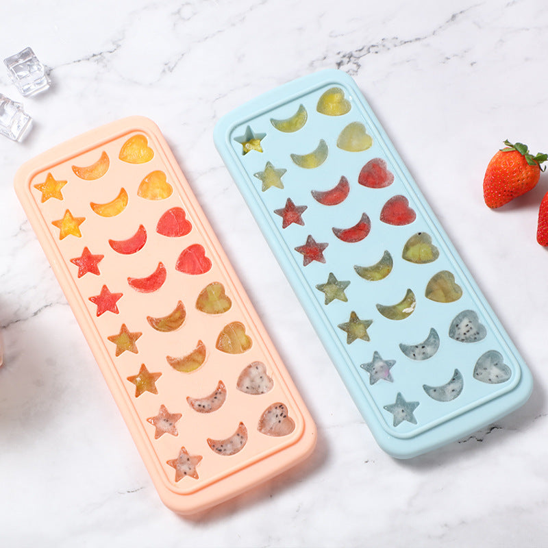 24-Grid Heart Moon Star Shaped BPA Free Silicone Ice Cube Tray Candy Mold with Removable Lid (without FDA Certificate)