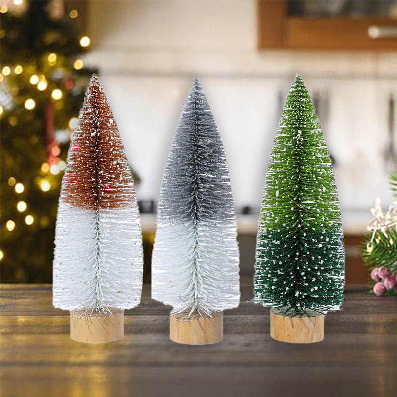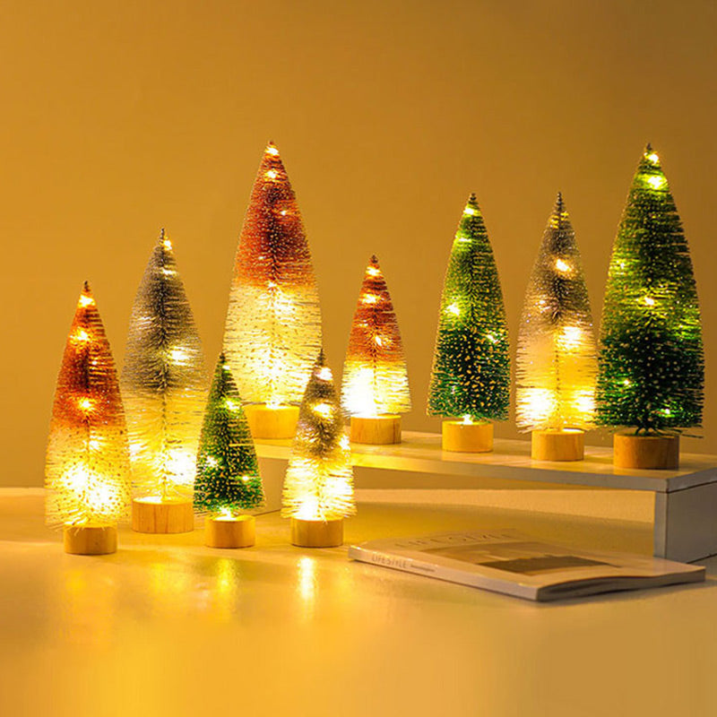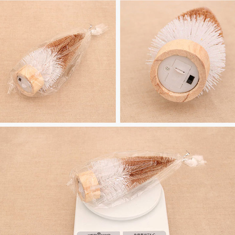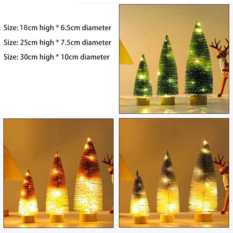 25cm LED Light Tabletop Christmas Tree Miniature Artificial Desk Xmas Tree with Wooden Base, Size M