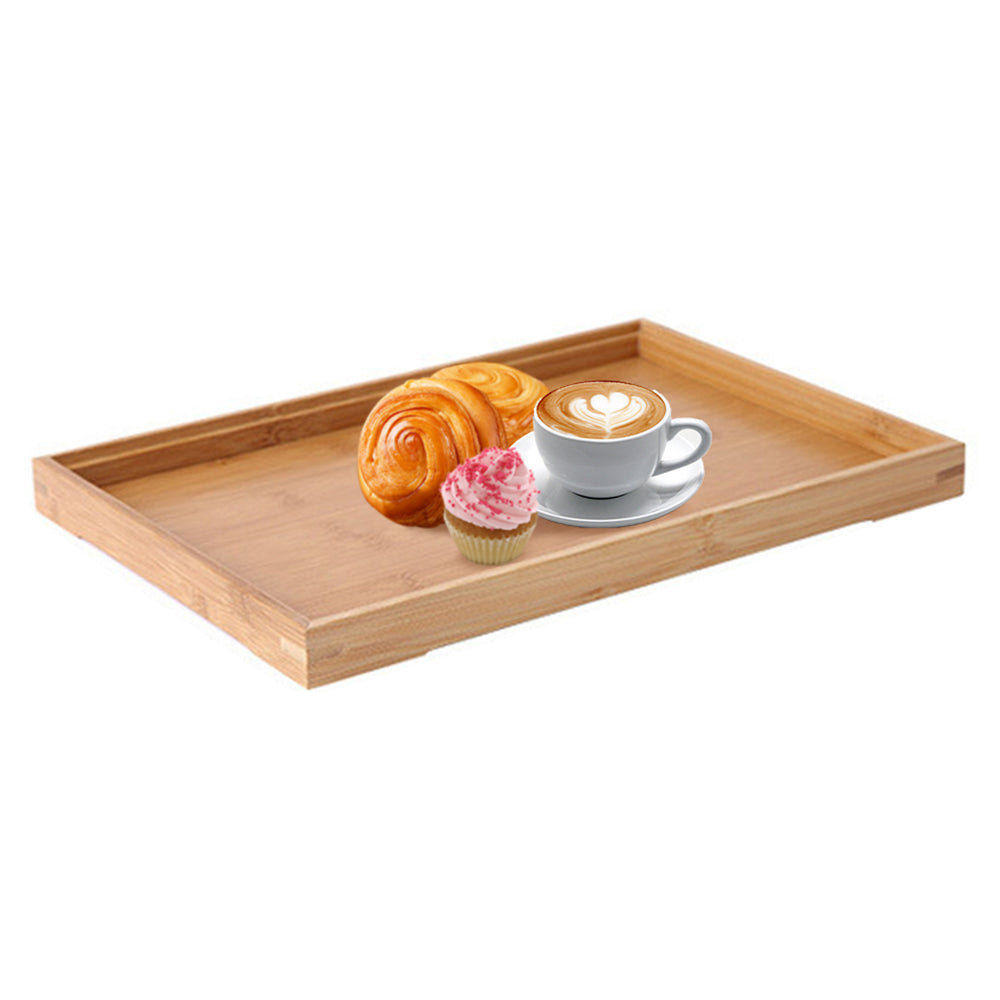 28*21*2.5cm Raised Edge Design Bamboo Food Serving Tray Decorative Trays for Living Room/Restaurants