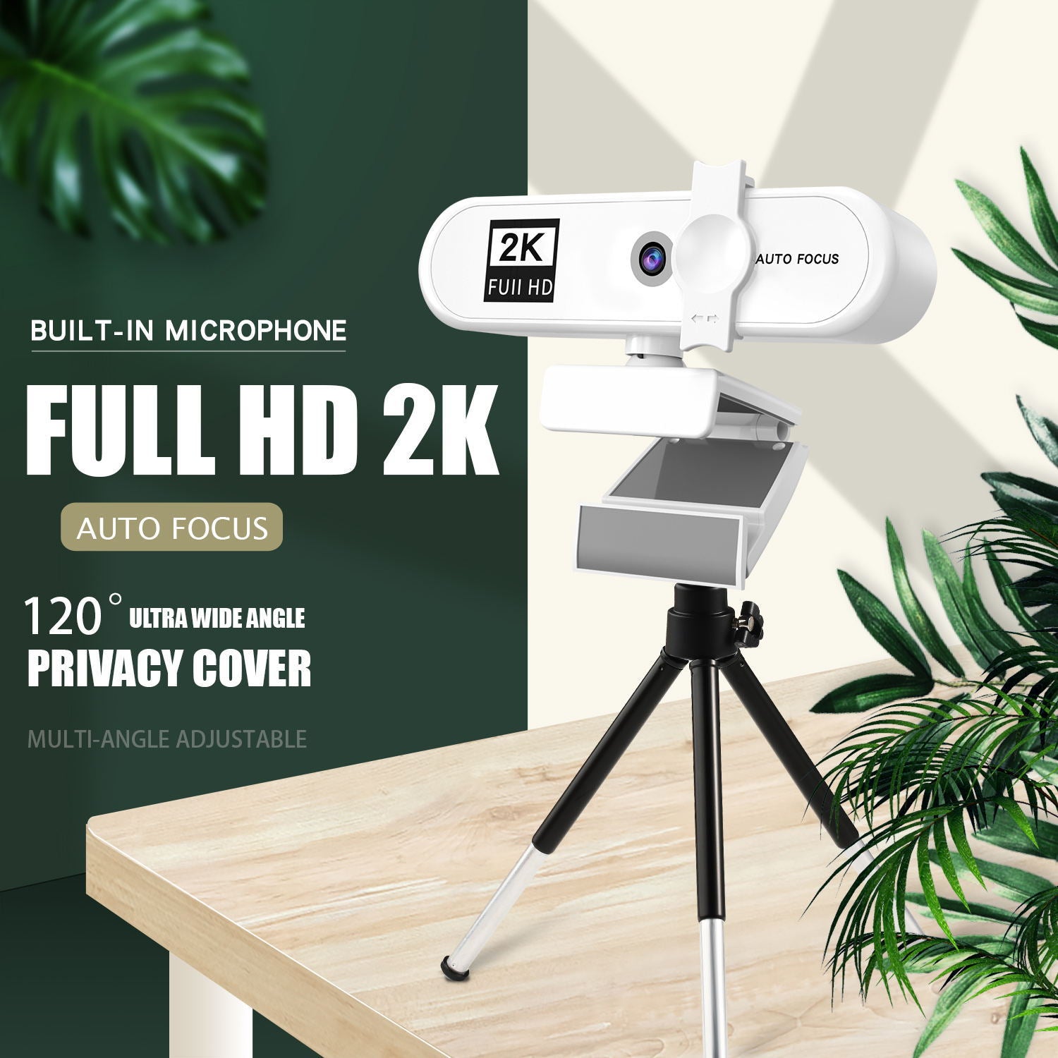 2K Full HD Auto Focus USB Computer Laptop Camera Live Streaming Video Conference Webcam with Built-in Microphone