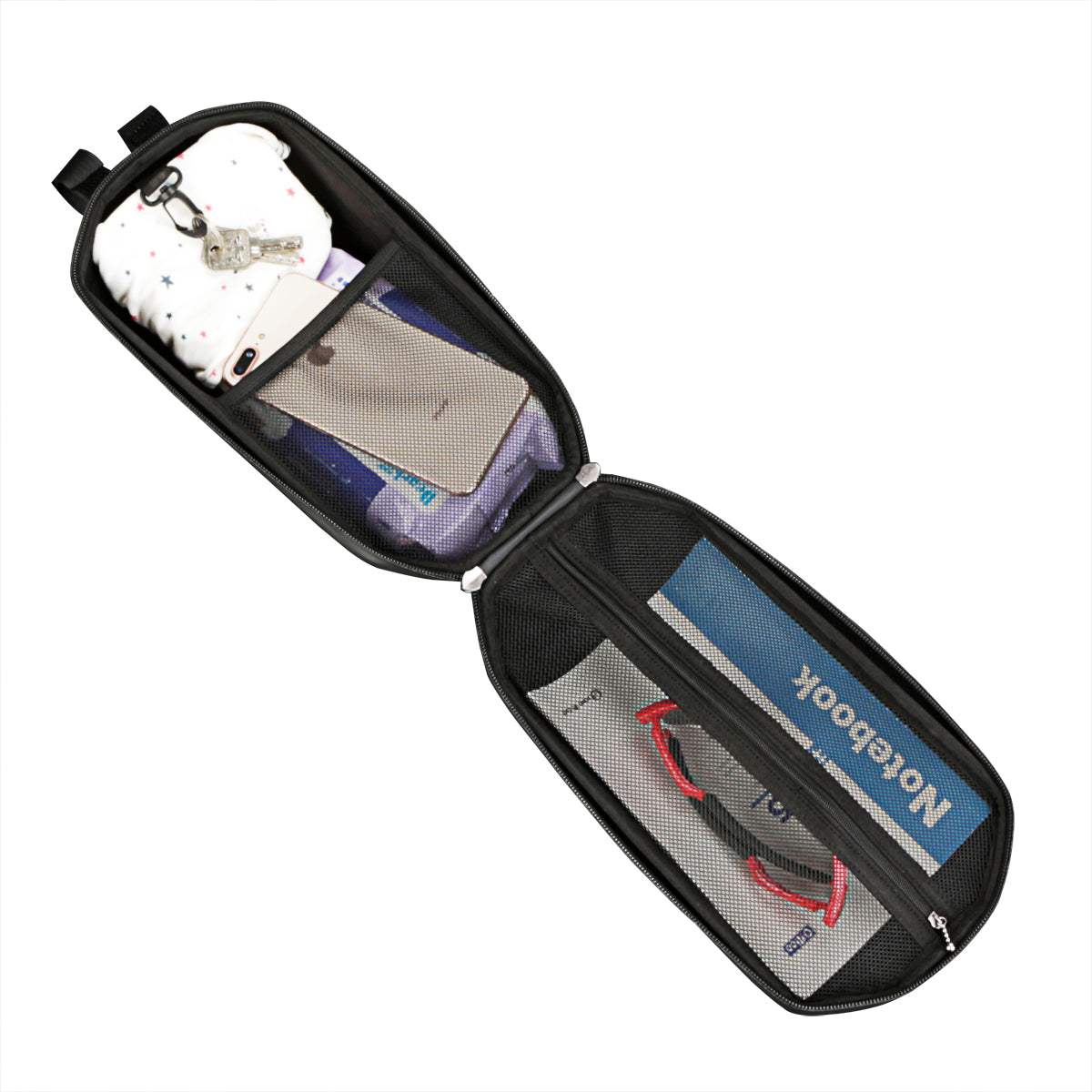 - Hard shell material, inner mesh bag design