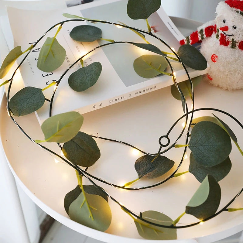 2m 20 LED Wedding Home Green Leaf Light String Simulation Eucalyptus Rattan Decorative Copper Wire Lamp