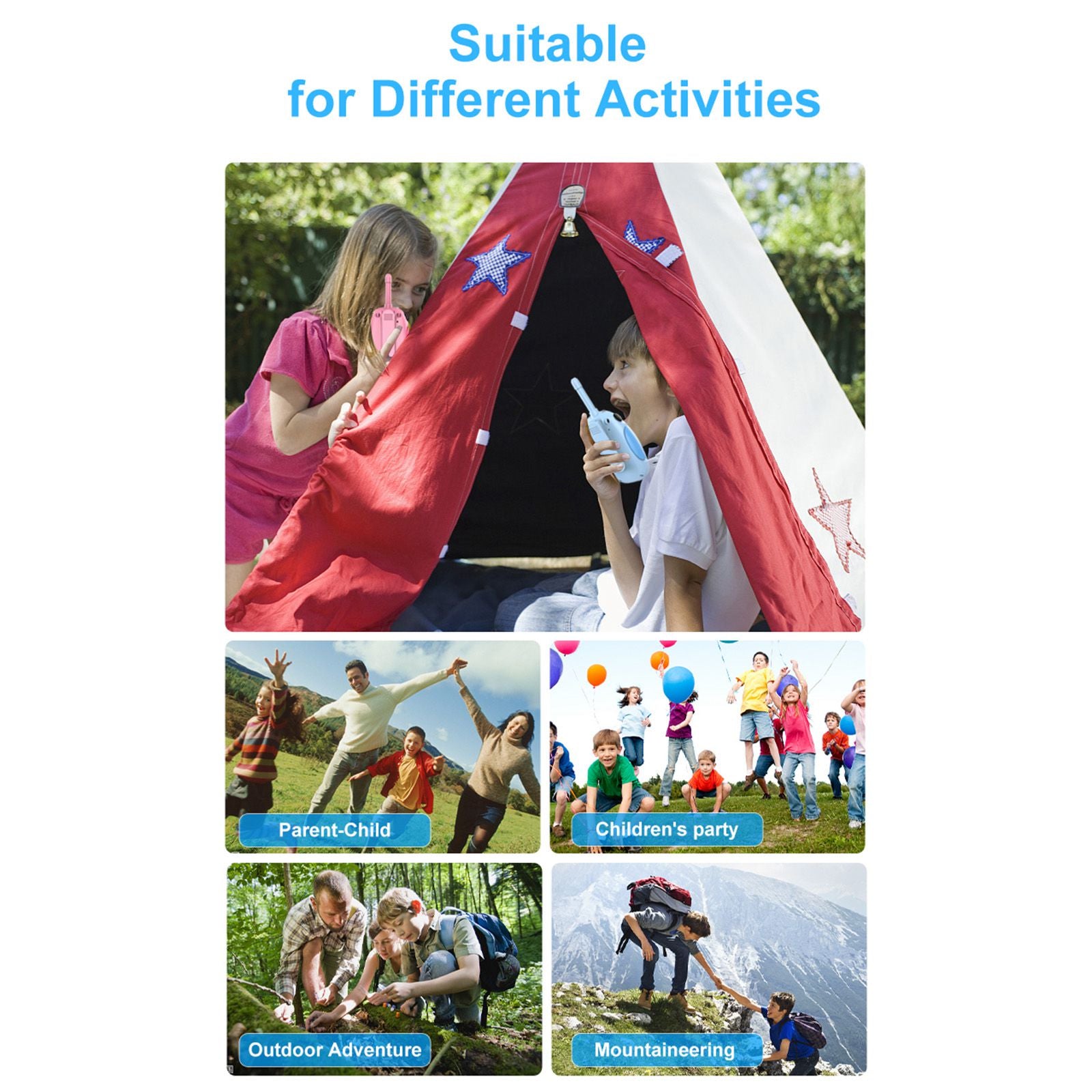 2Pcs DJ100 Children Walkie Talkie Toys Kids Interphone Mini Handheld Transceiver 3KM Range UHF Radio with Lanyard