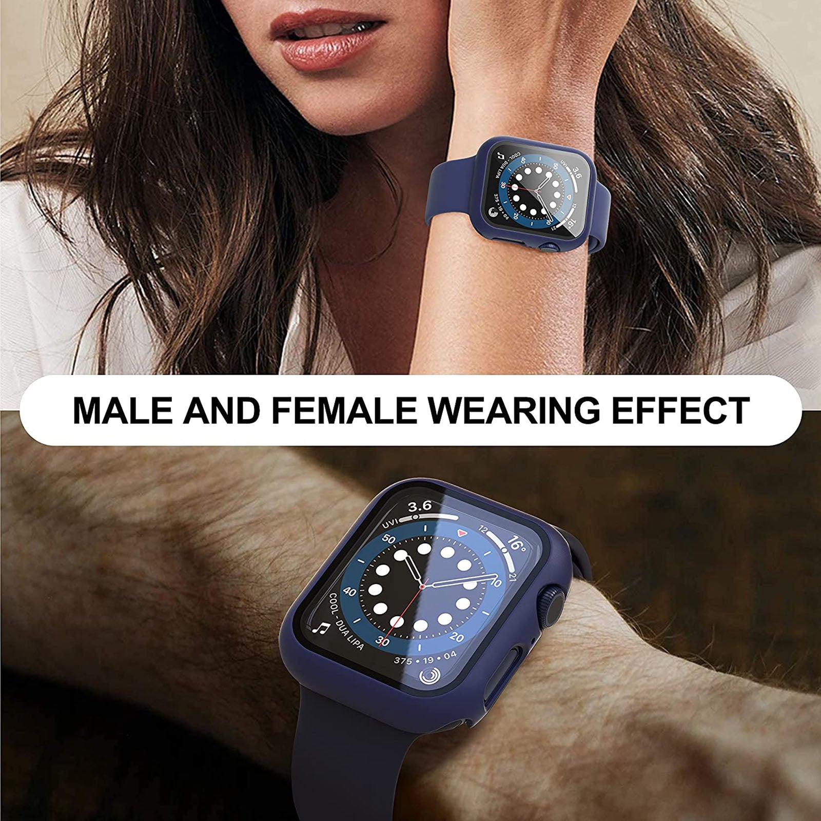 2Pcs Hard PC Smartwatch Frame Case+Tempered Glass Screen Protector Anti-scratch Replacement for Apple Watch Series 7 45mm / Series 8 45mm