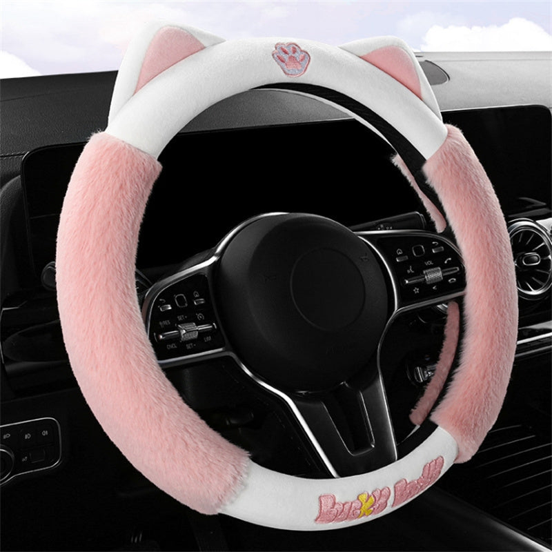 38cm Plush Steering Wheel Cover Cute Cat Non-Slip Car Steering Wheel Protector for Winter Warm