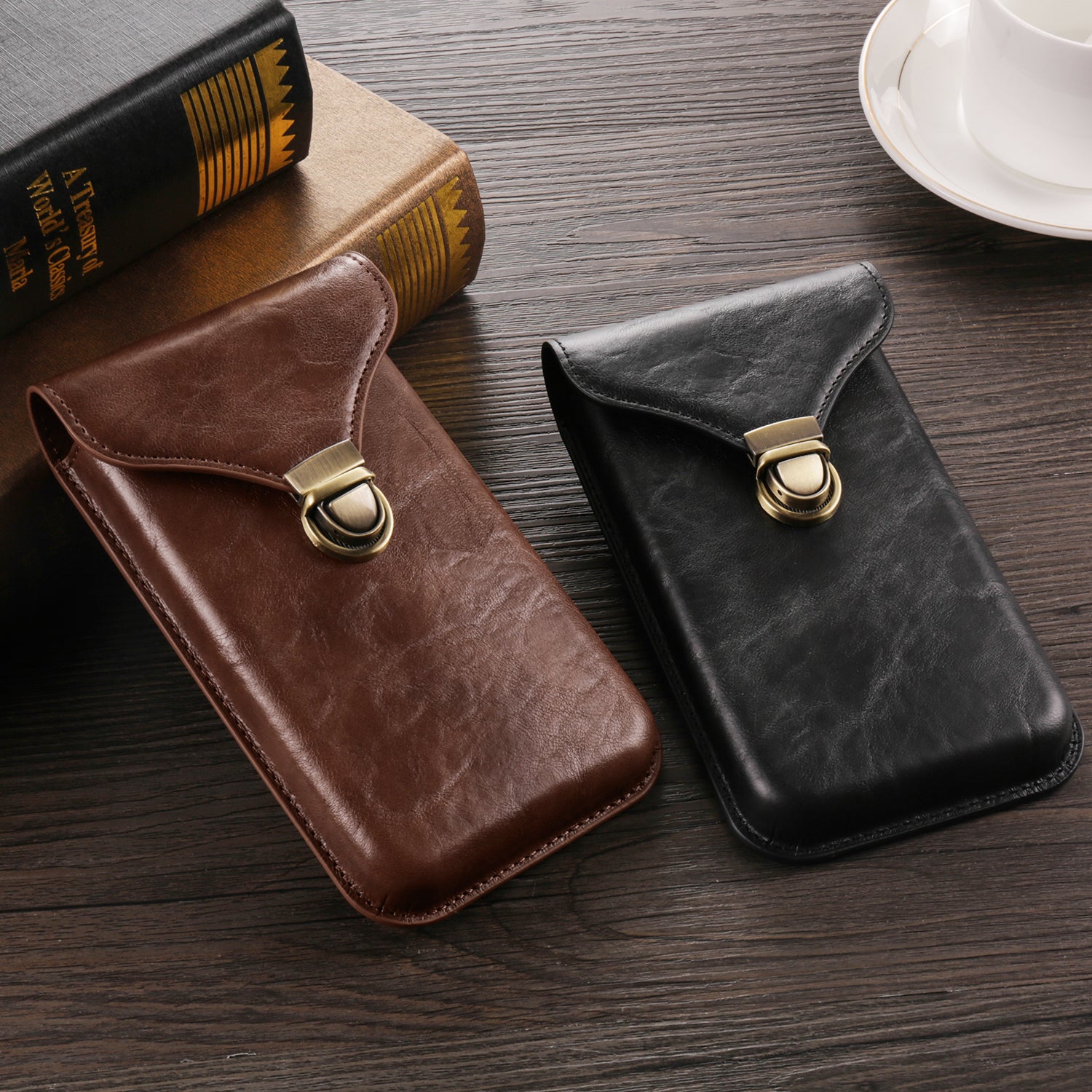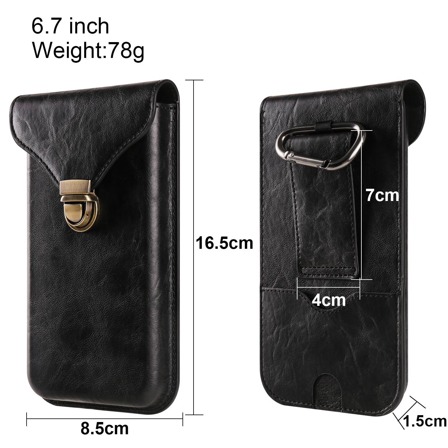6.7-inch Universal Phone Case Card Holder PU Leather Waist Belt Holster Vertical Phone Pouch
