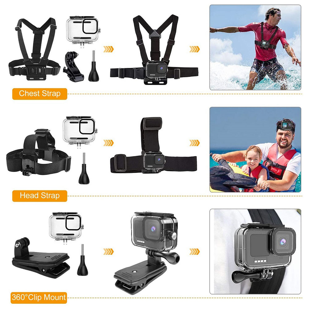 - This complete accessories set contains all the basic and useful mounts to make you expending the camera fun
