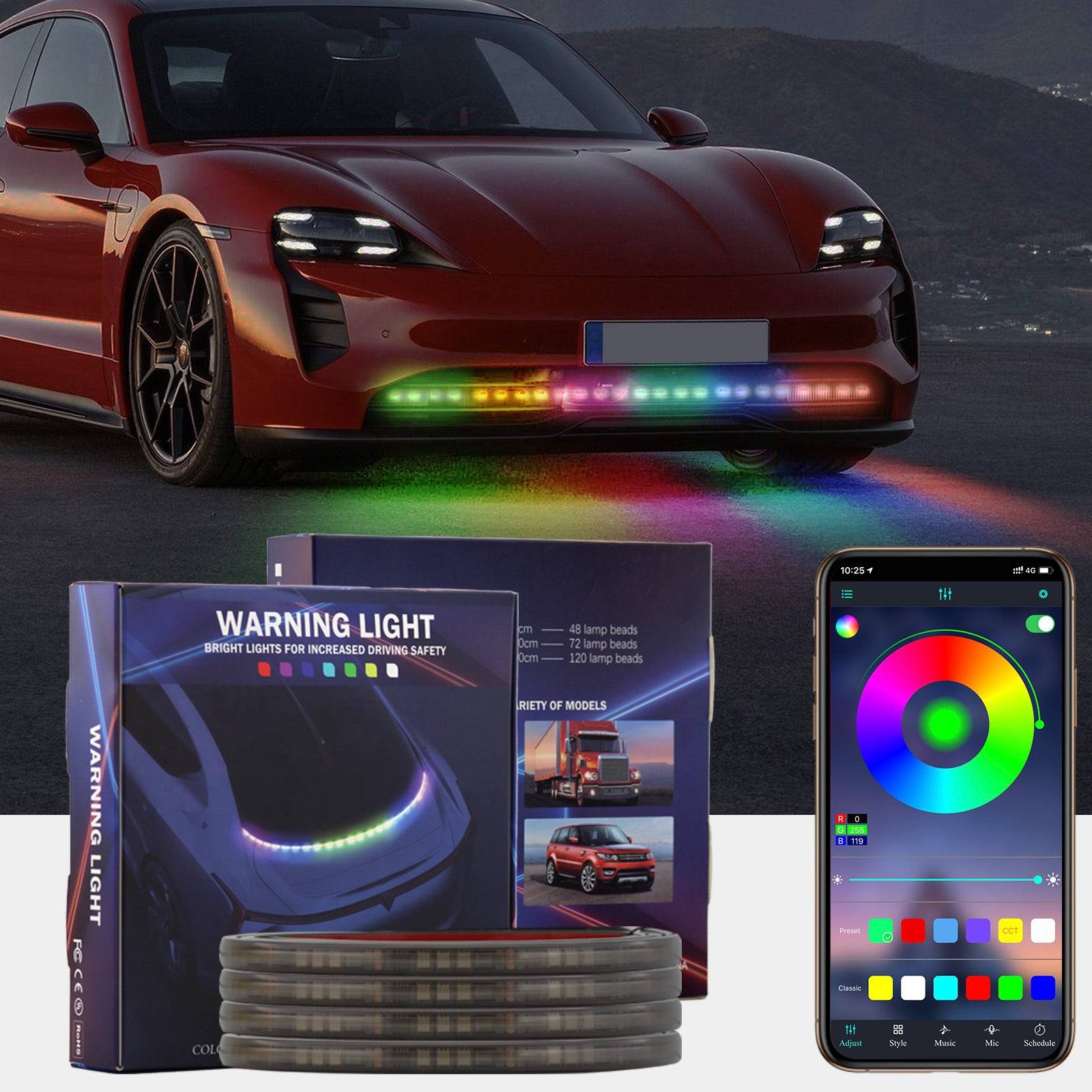 A15 150cm 5050 LED RGB Daytime Running Light Strip Car Front Bumper Grille Bluetooth APP Control Warning Light
