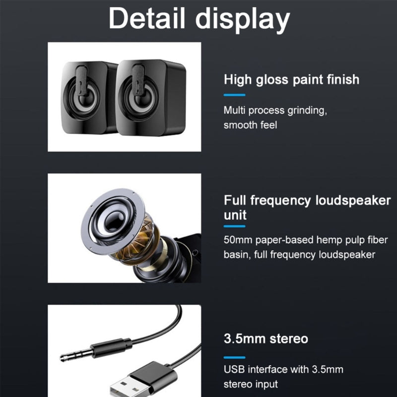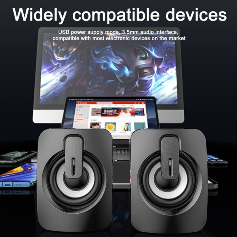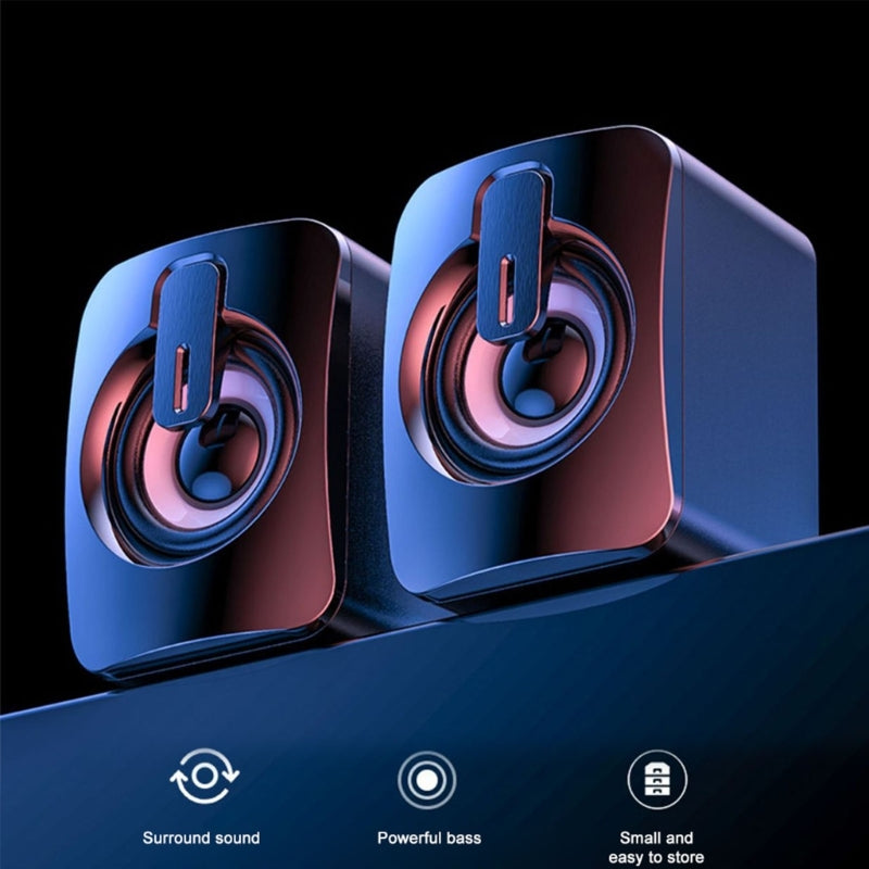A2 Mini USB Wired Desktop Speaker Computer Laptop Volume Adjustable Subwoofer with Colorful Light