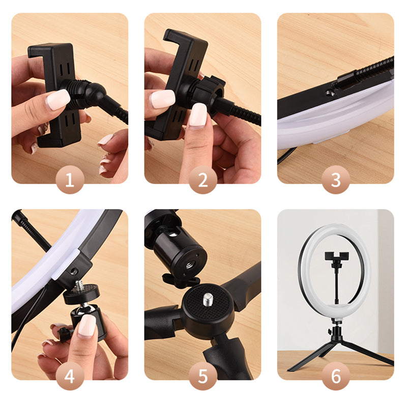 A26 Desktop 10-Inch LED Selfie Ring Light Tripod Stand Phone Clip Mount Vlogging Video Light Live Broadcast Kit