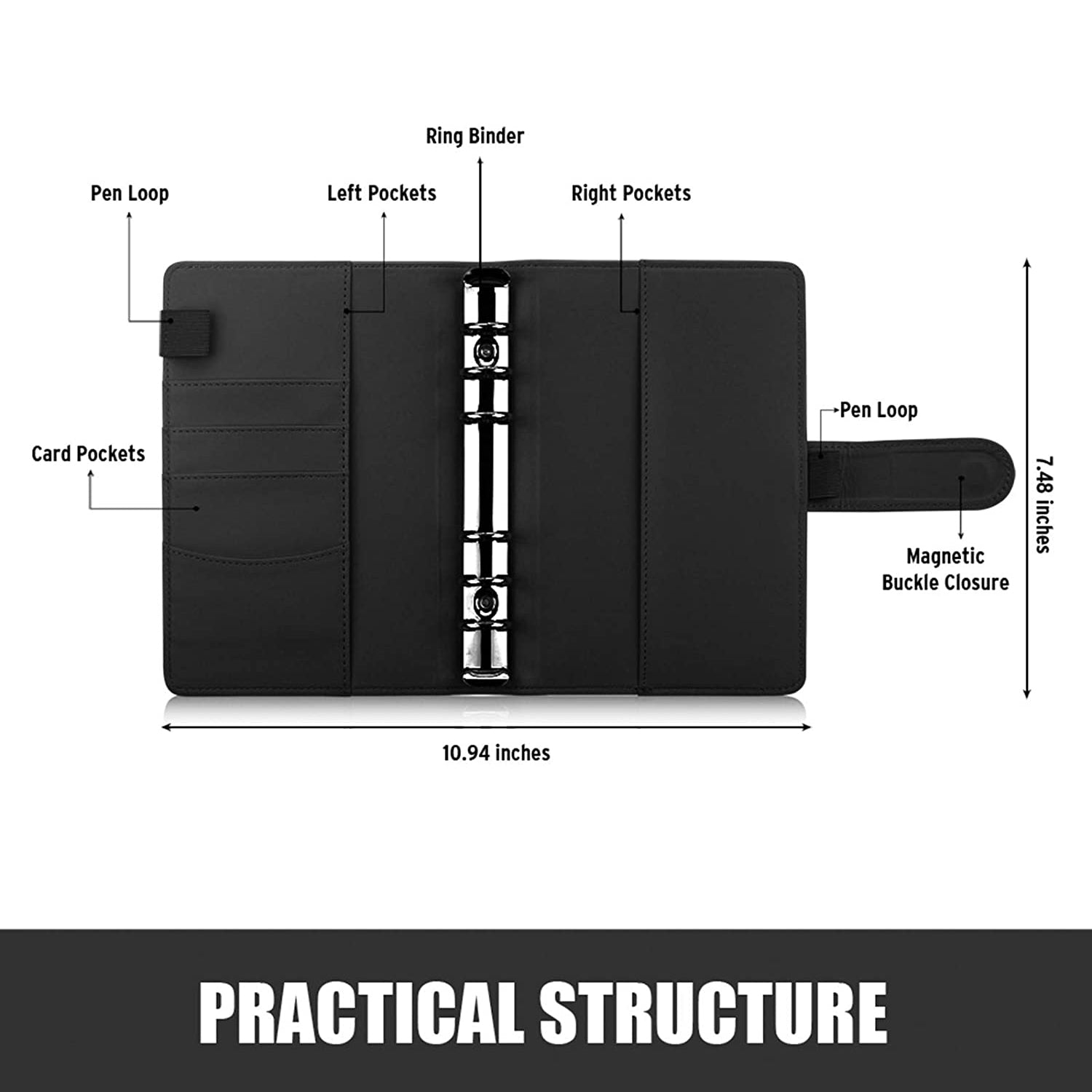 - The 6-ring stainless steel binder fits all standard A6 size inner pages and pockets