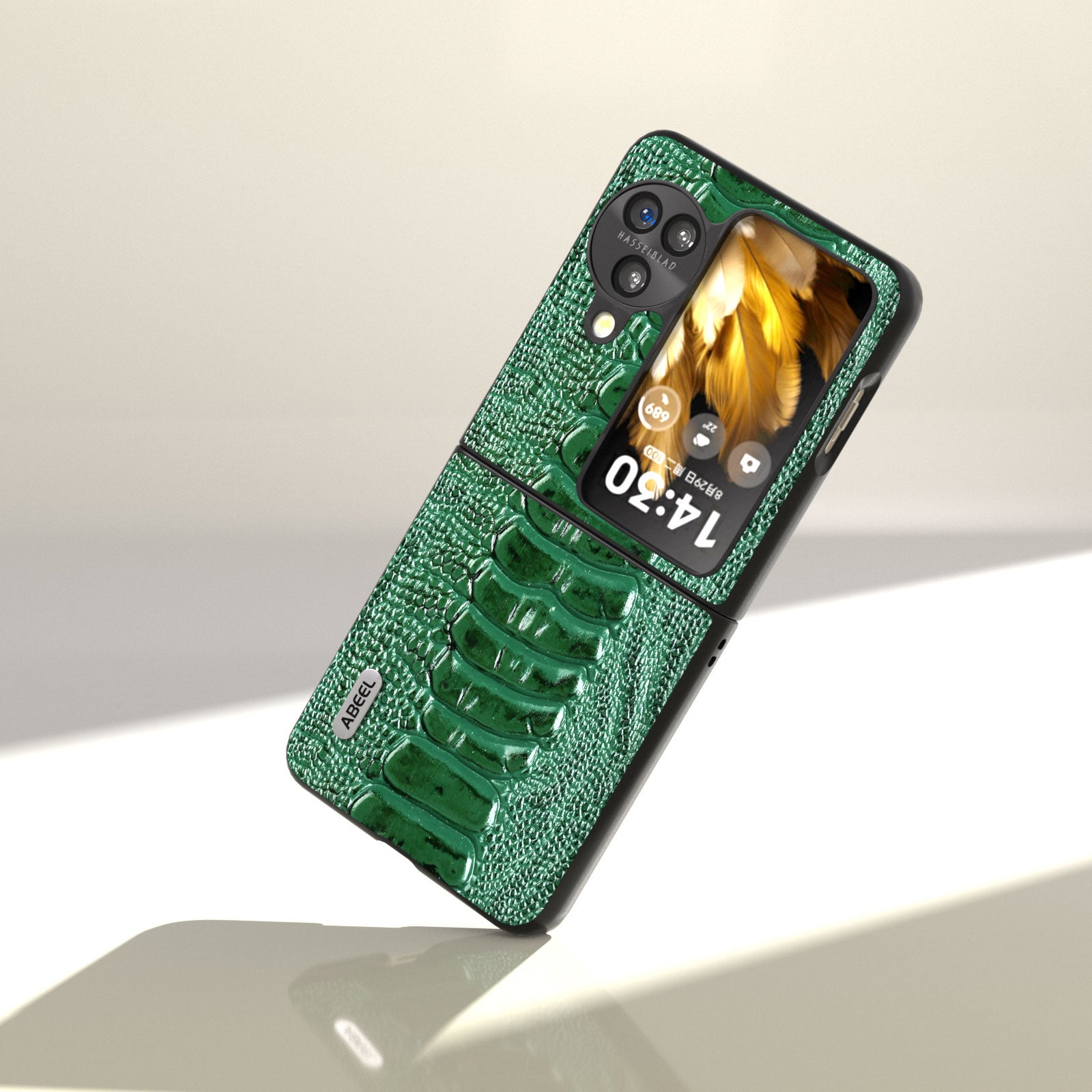 ABEEL For Oppo Find N3 Flip 5G Genuine Cow Leather+PC Case Crocodile Texture Anti-Scratch Phone Cover