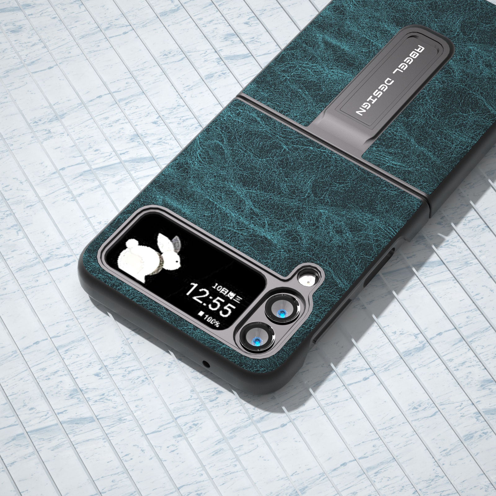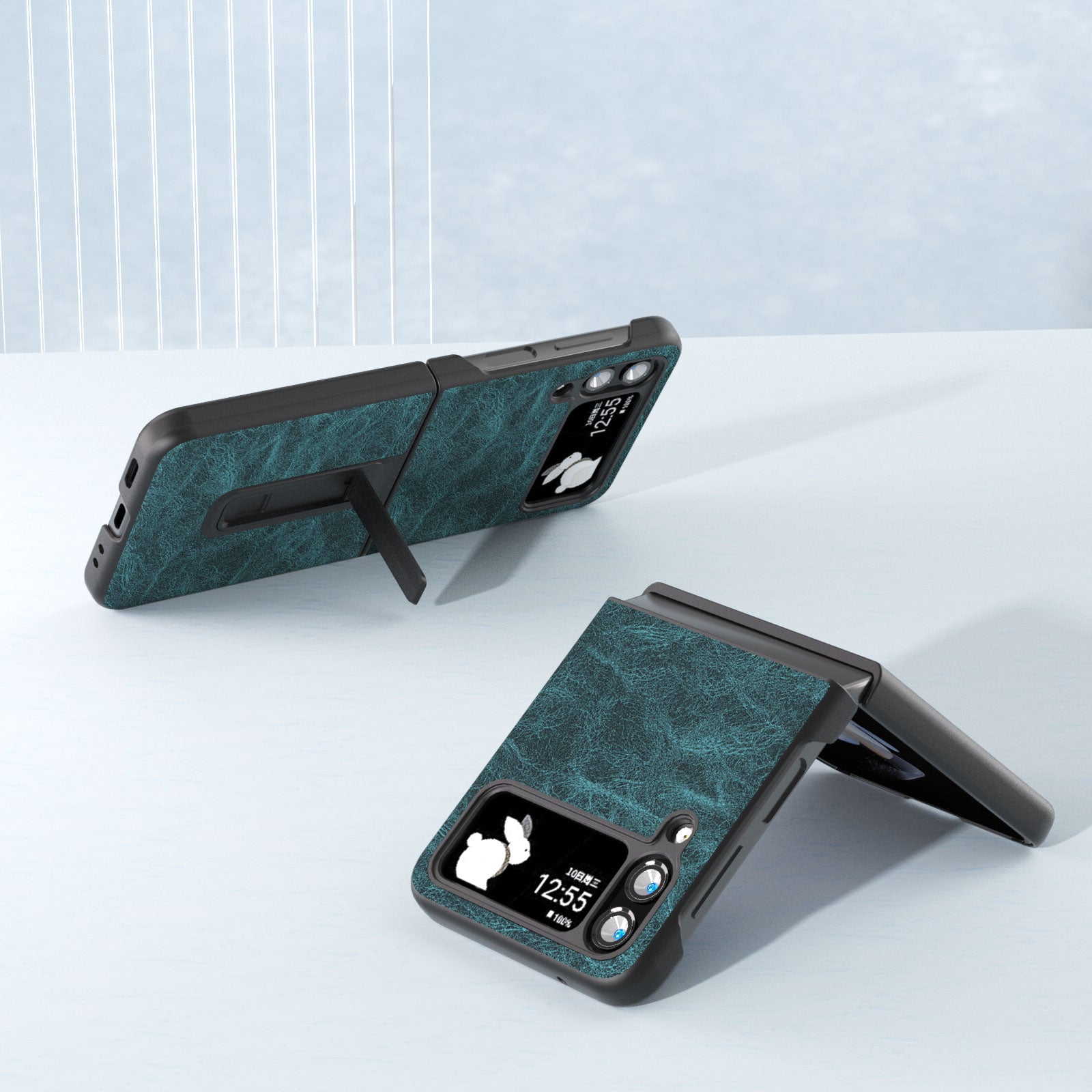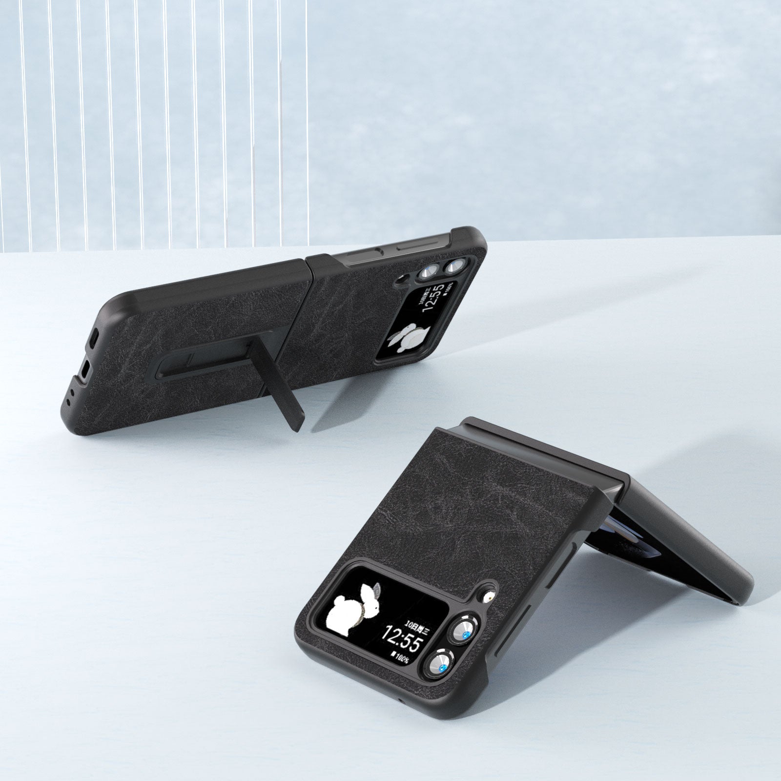 ABEEL For Samsung Galaxy Z Flip4 5G Kickstand Phone Case Anti-Scratch Litchi Texture PU Leather PC Cover