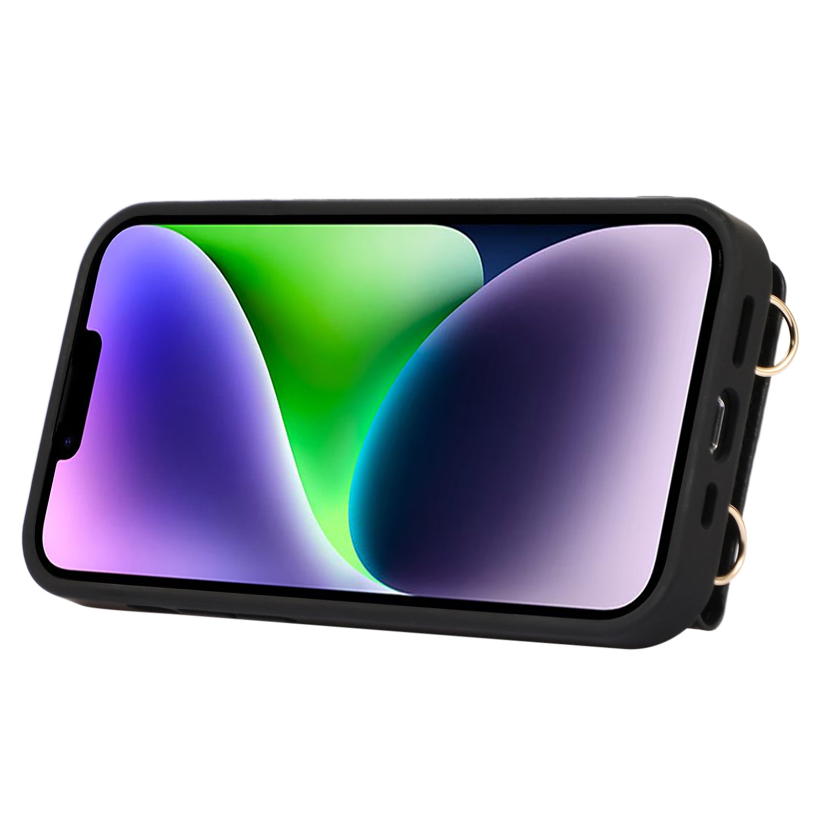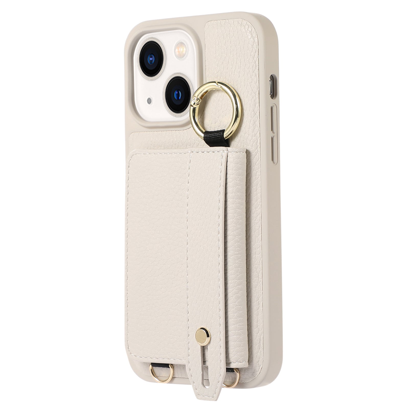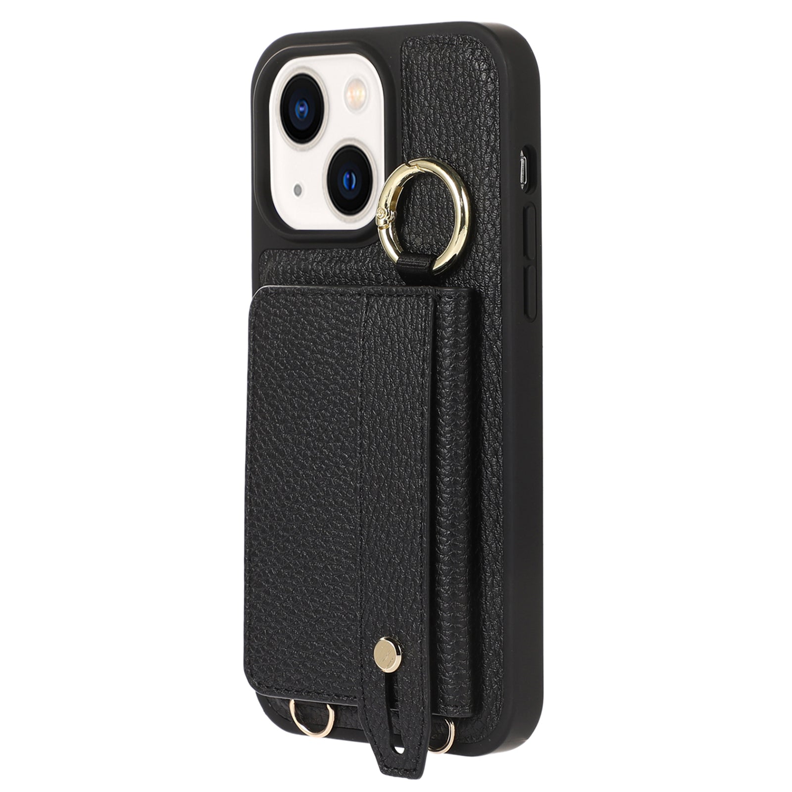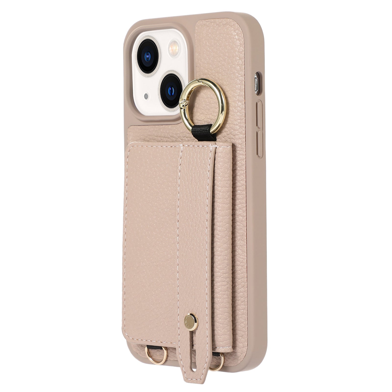 Anti-drop Cover for iPhone 14 Plus Card Holder Hand Strap Leather+TPU Phone Kickstand Case with Shoulder Strap