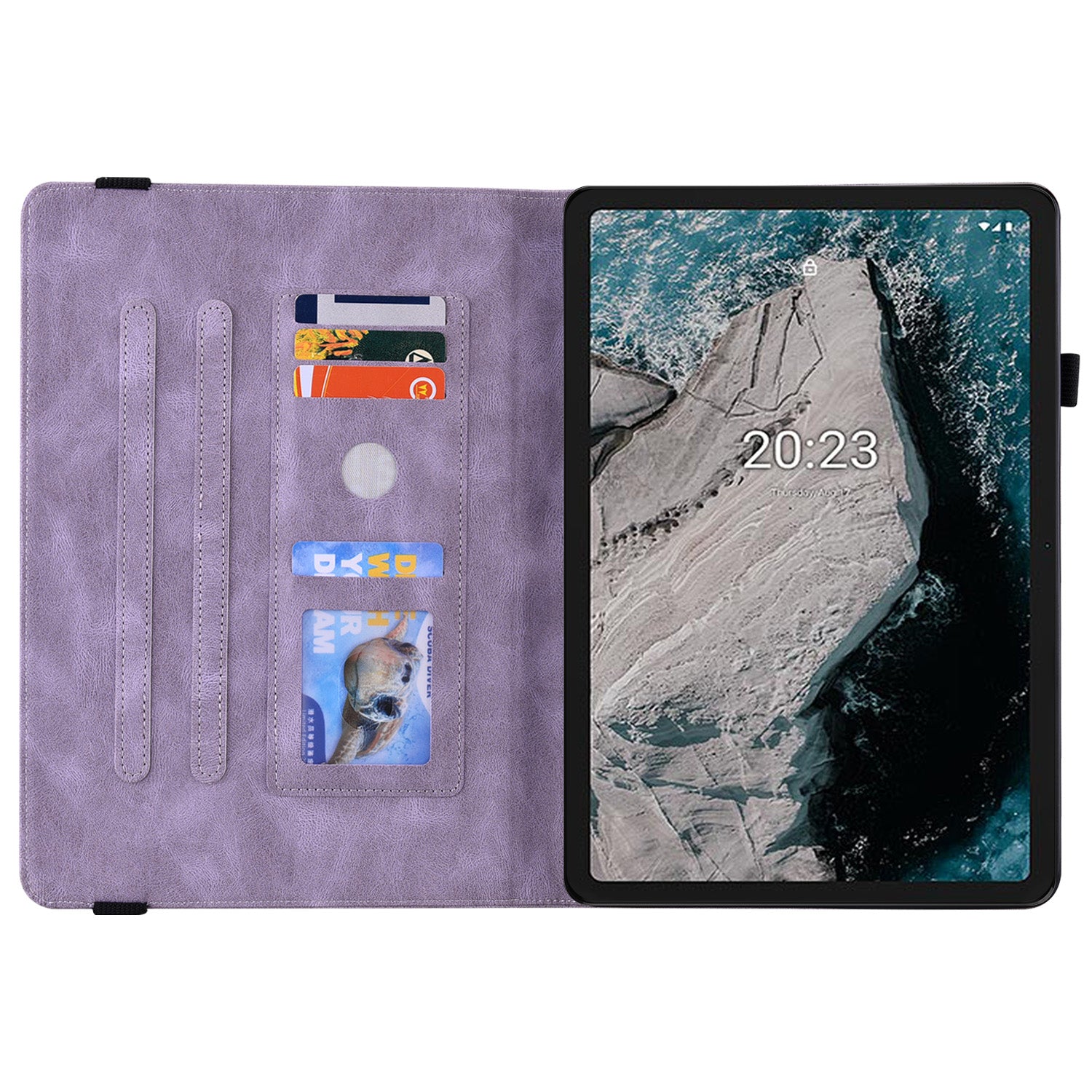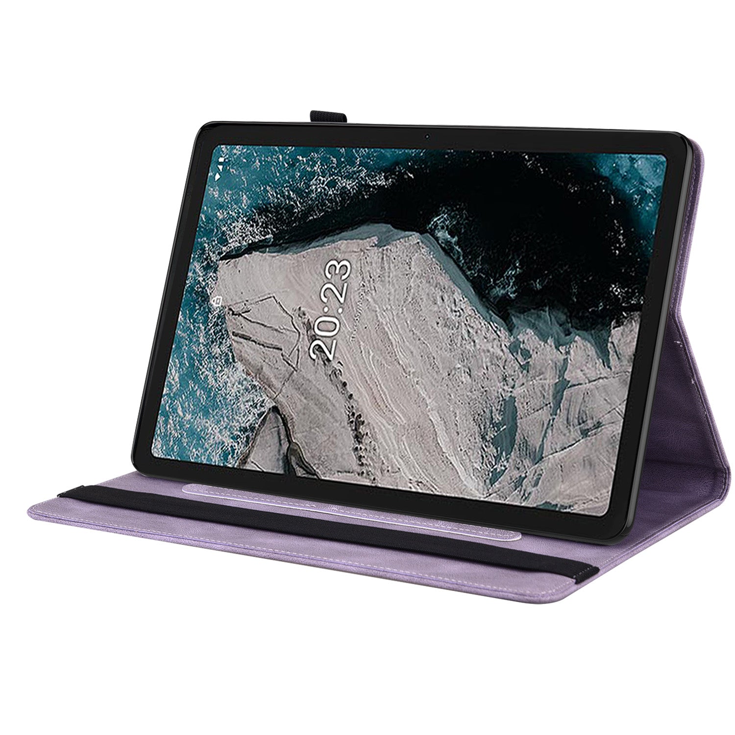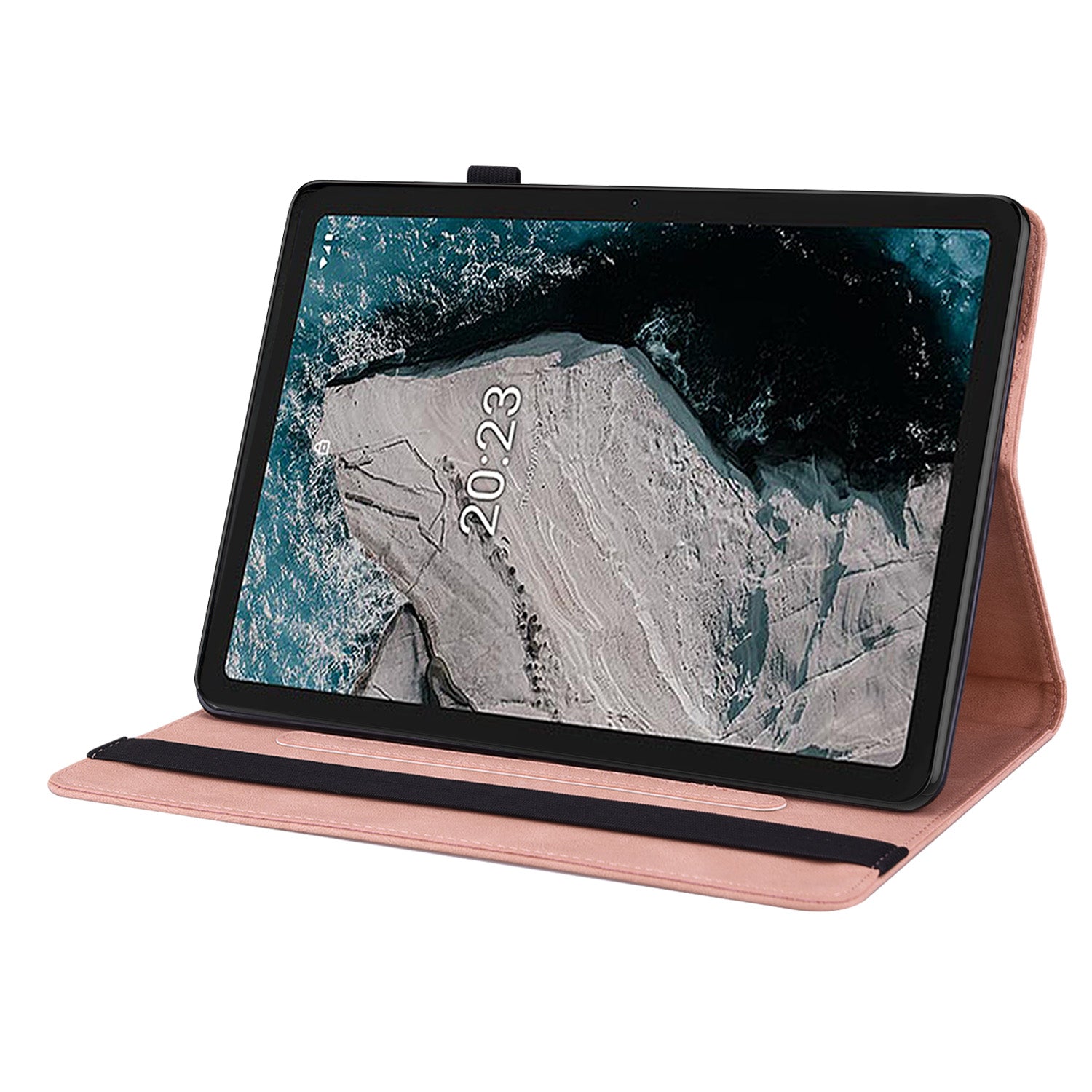 Anti-drop Tablet Case for Nokia T20 PU Leather Butterfly Flower Imprinted Card Holder Stand Cover