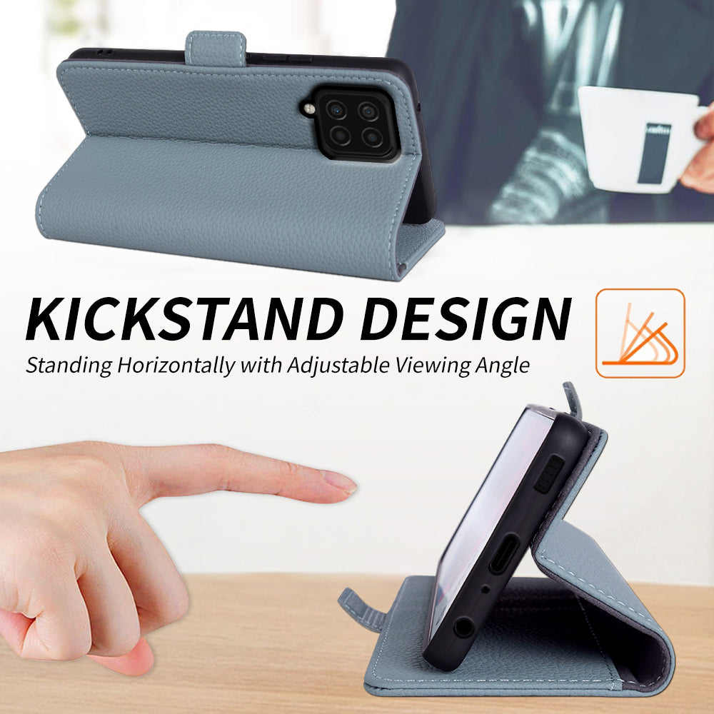 Anti-scratch Wallet Case for Samsung Galaxy A12 Litchi Texture Genuine Cow Leather Stand Phone Cover