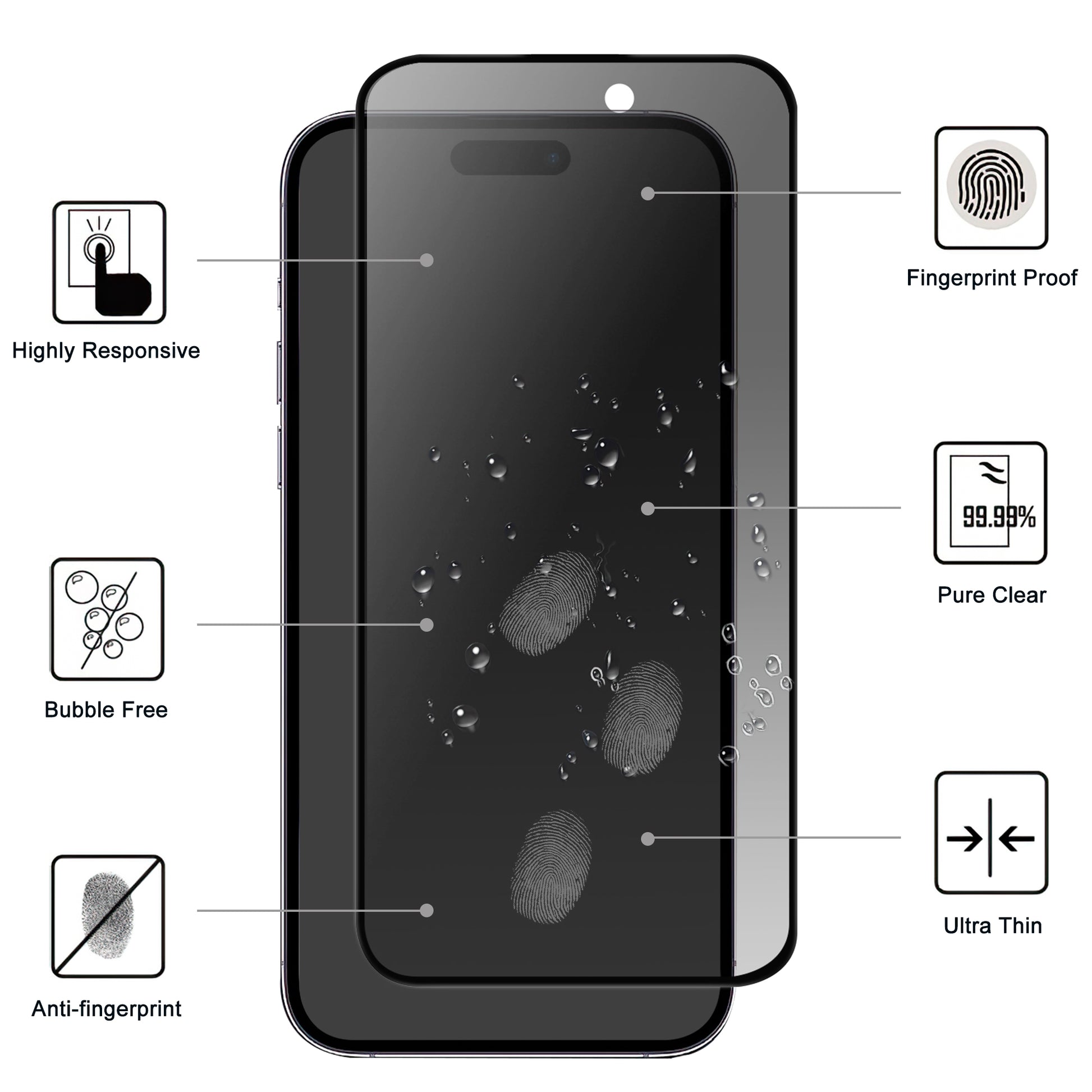 Anti-spy Phone Screen Protector for iPhone 15 Pro Max , 2.5D Arc Edge Anti-explosion Tempered Glass Film