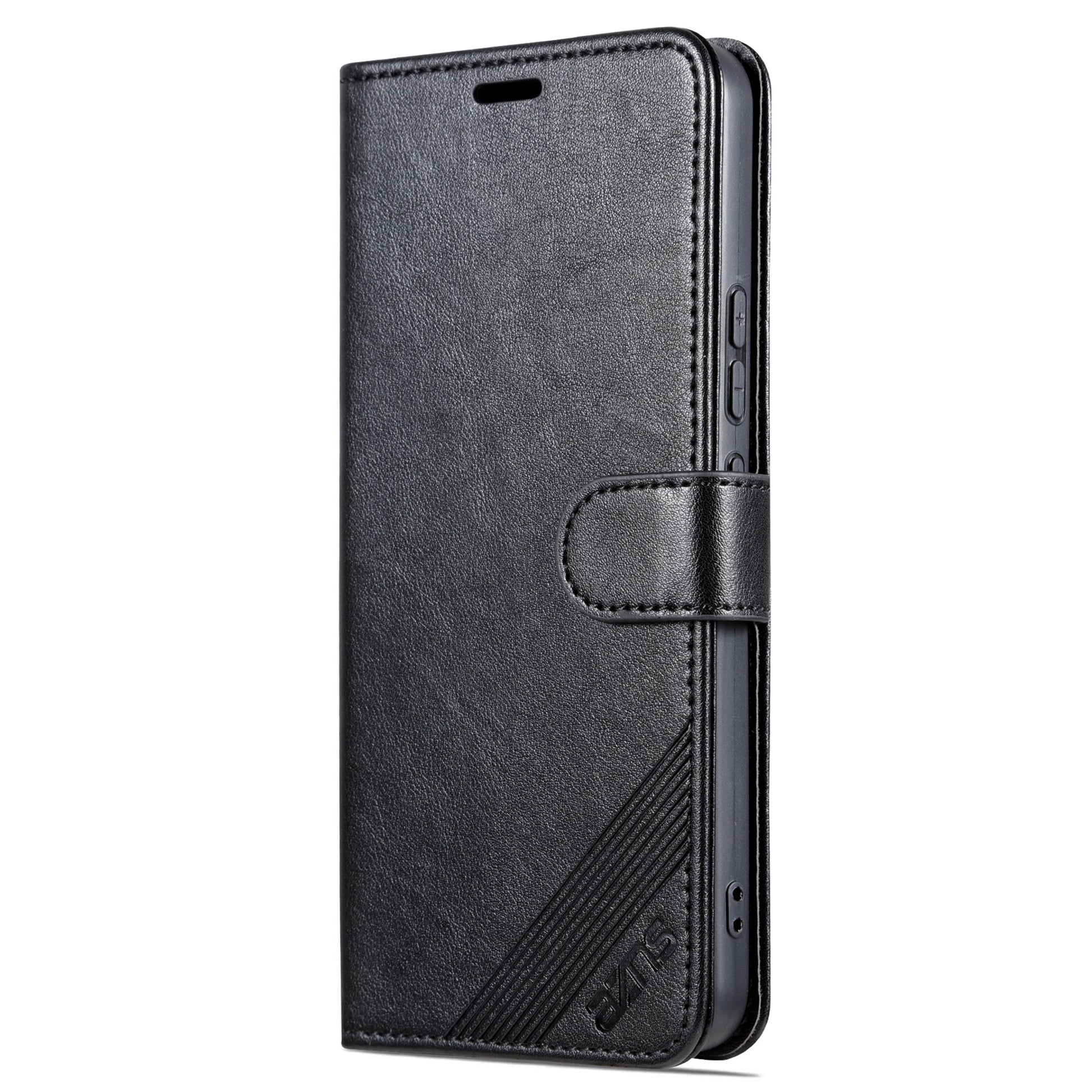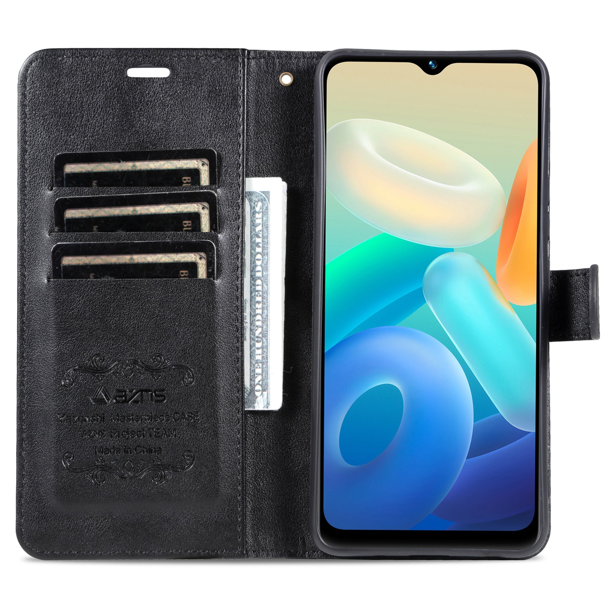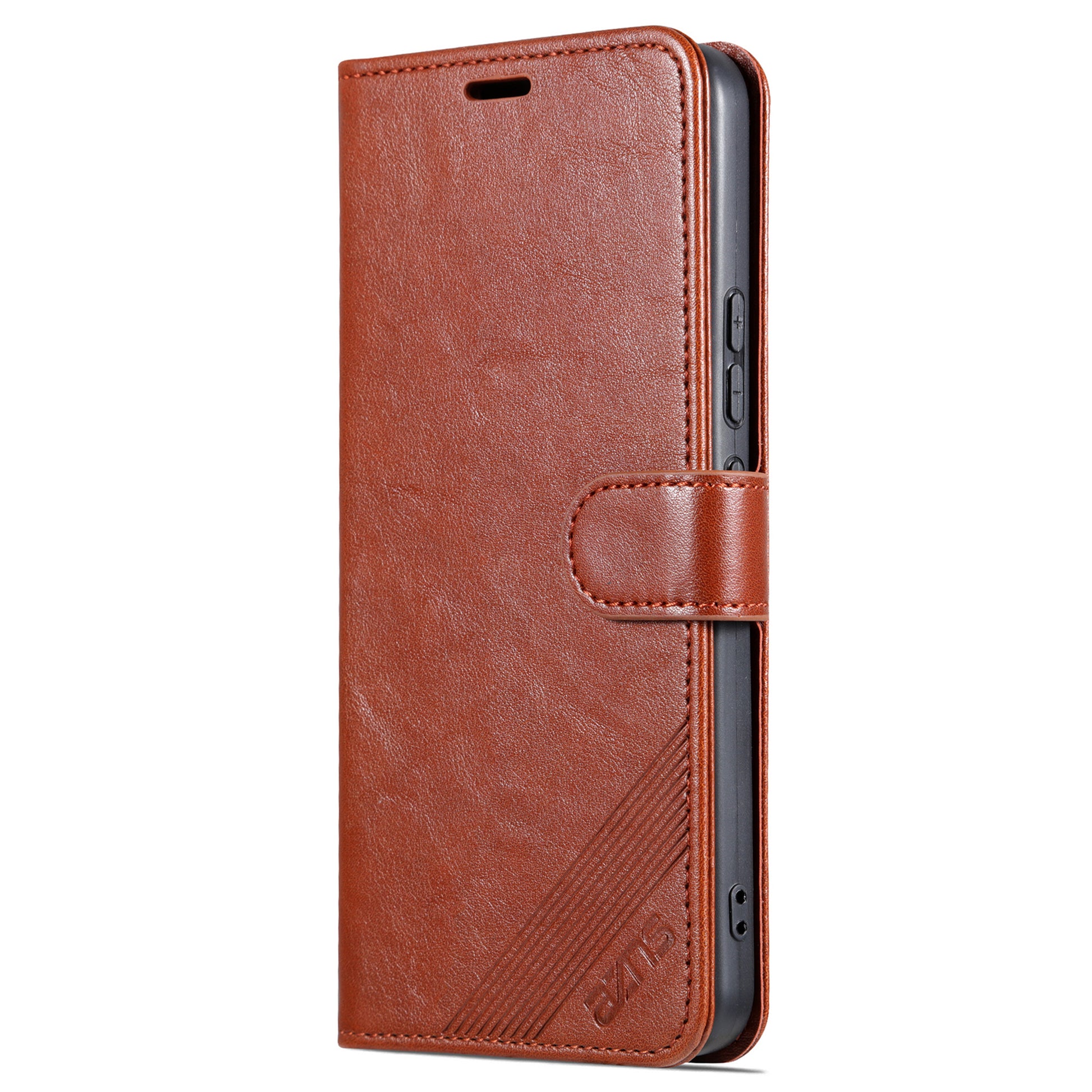 High-class PU leather with a TPU inner case provides good and all-inclusive protection for the phone. Built-in multiple card slots and one cash pocket inside keep your main cards and cash money on the same side and easy to use. Imprinting logo, dots and lines add some details to the plain phone case.