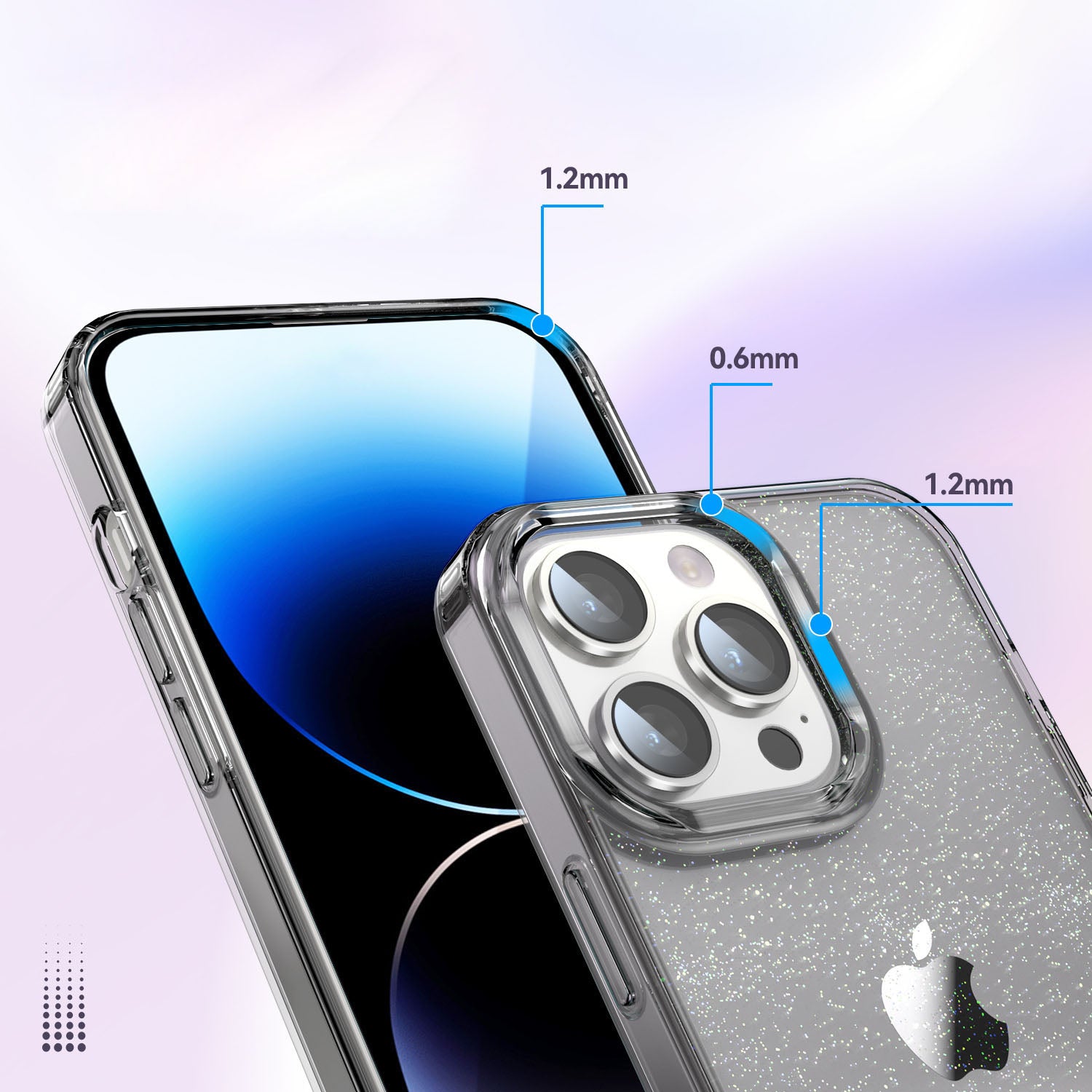 Back Case for iPhone 13 Pro Max 6.7 inch PC+TPU Glitter Powder Clear IMD Mobile Phone Cover