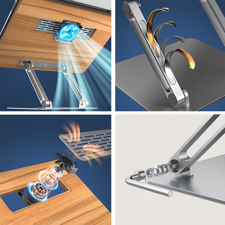 BG-4F Metal+MDF Portable Tablet Stand Height Adjustable Folding Laptop Holder with Cooling Fan, Book Clips