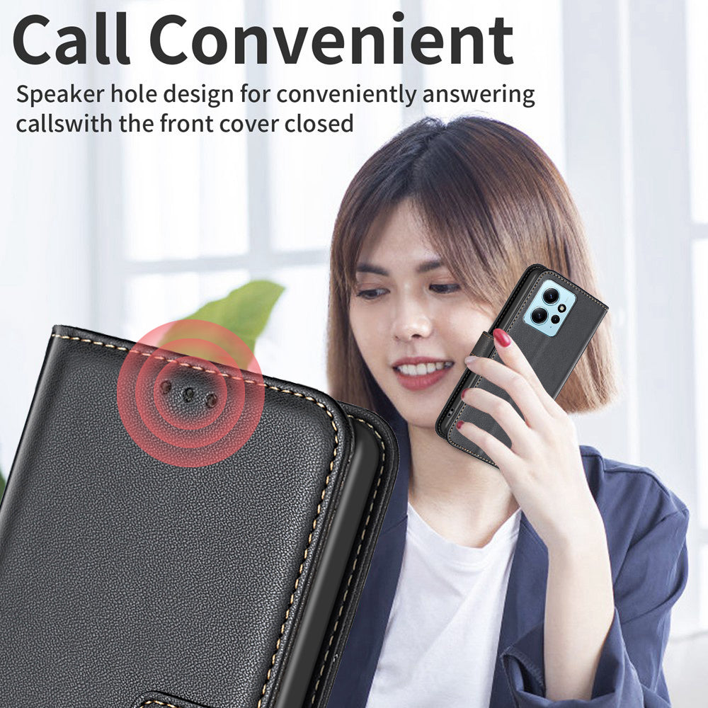 BINFEN COLOR BF17 For Xiaomi Redmi Note 12 4G Phone Stand Case PU Leather Cell Phone Wallet Cover