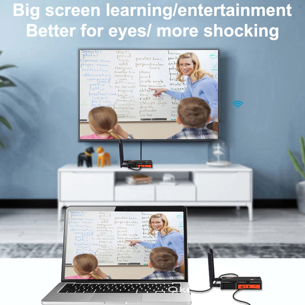 - The transmitter supports input of up to 4K@60HZ ultra-clear video, meeting Demonstration, multimedia teaching, watching TV, playing games, etc.