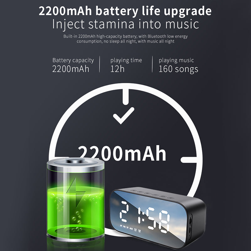 - Built-in 1200mAh lithium battery, charging time is about 3 hours, standby time is up to 85 hours, music playing time is 6 hours, LED time/display time is 45 hours