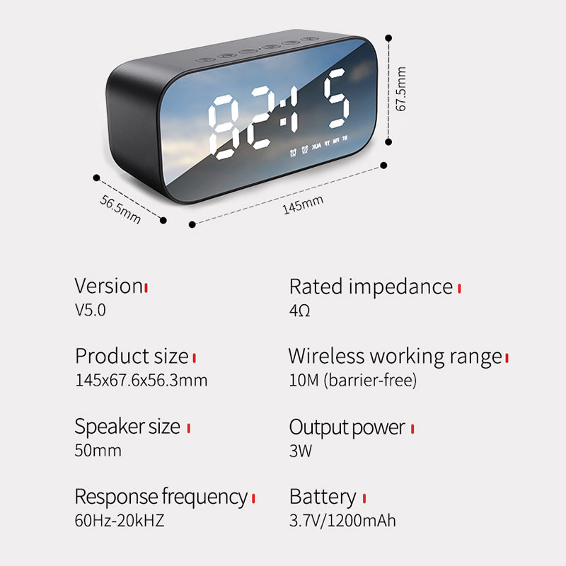 - Dual alarm settings, full-mirror digital display of time, three-adjustment of screen brightness, intuitive and convenient
