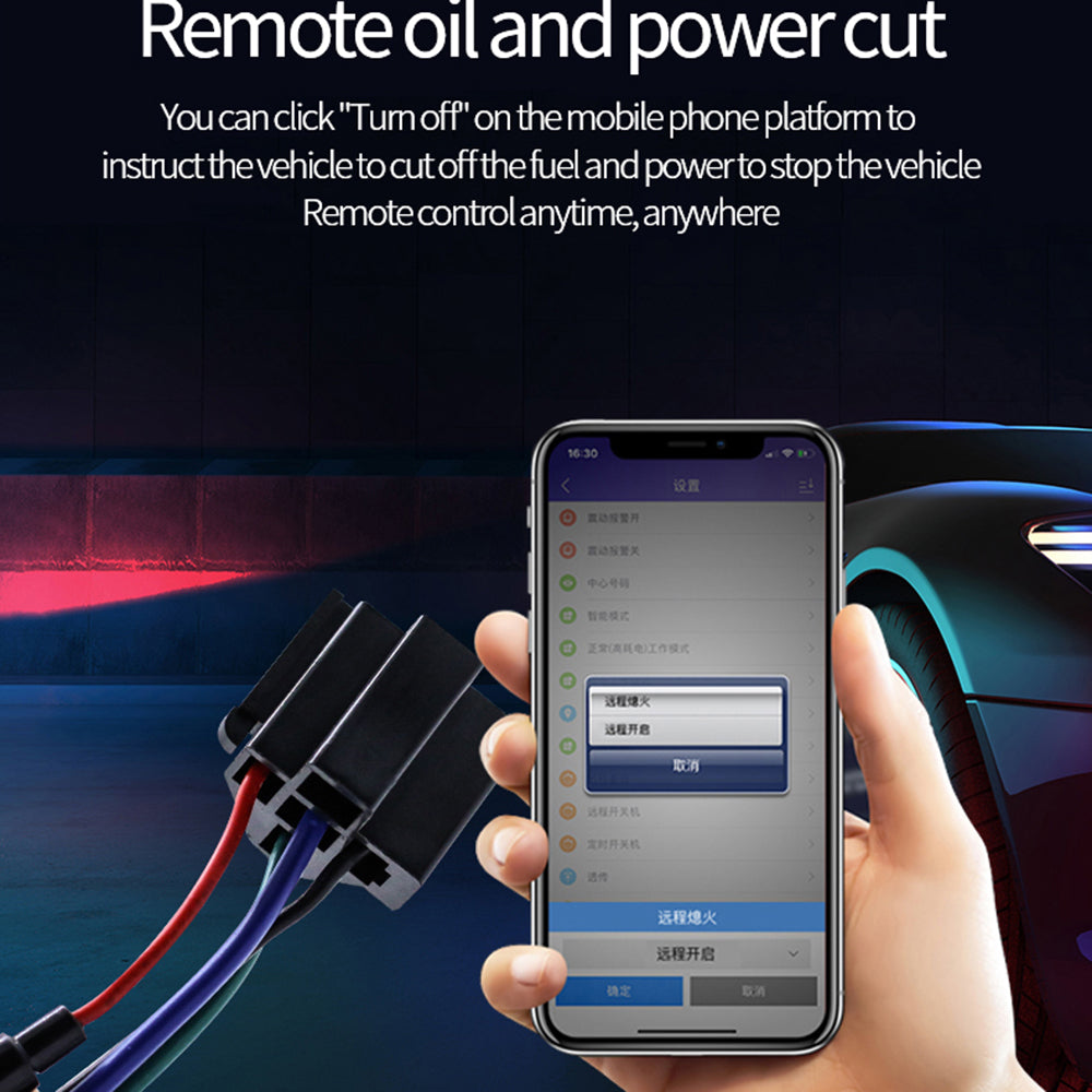 - Remote control, you can click ''Turn off'' button on the mobile phone to instruct the vehicle to cut off the fuel and power off