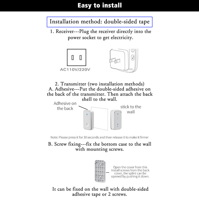 - 5 levels of adjustable volume whatever you want: The doorbell has five levels of volume, which can be adjusted freely. (Volume can be adjusted, light reminder)