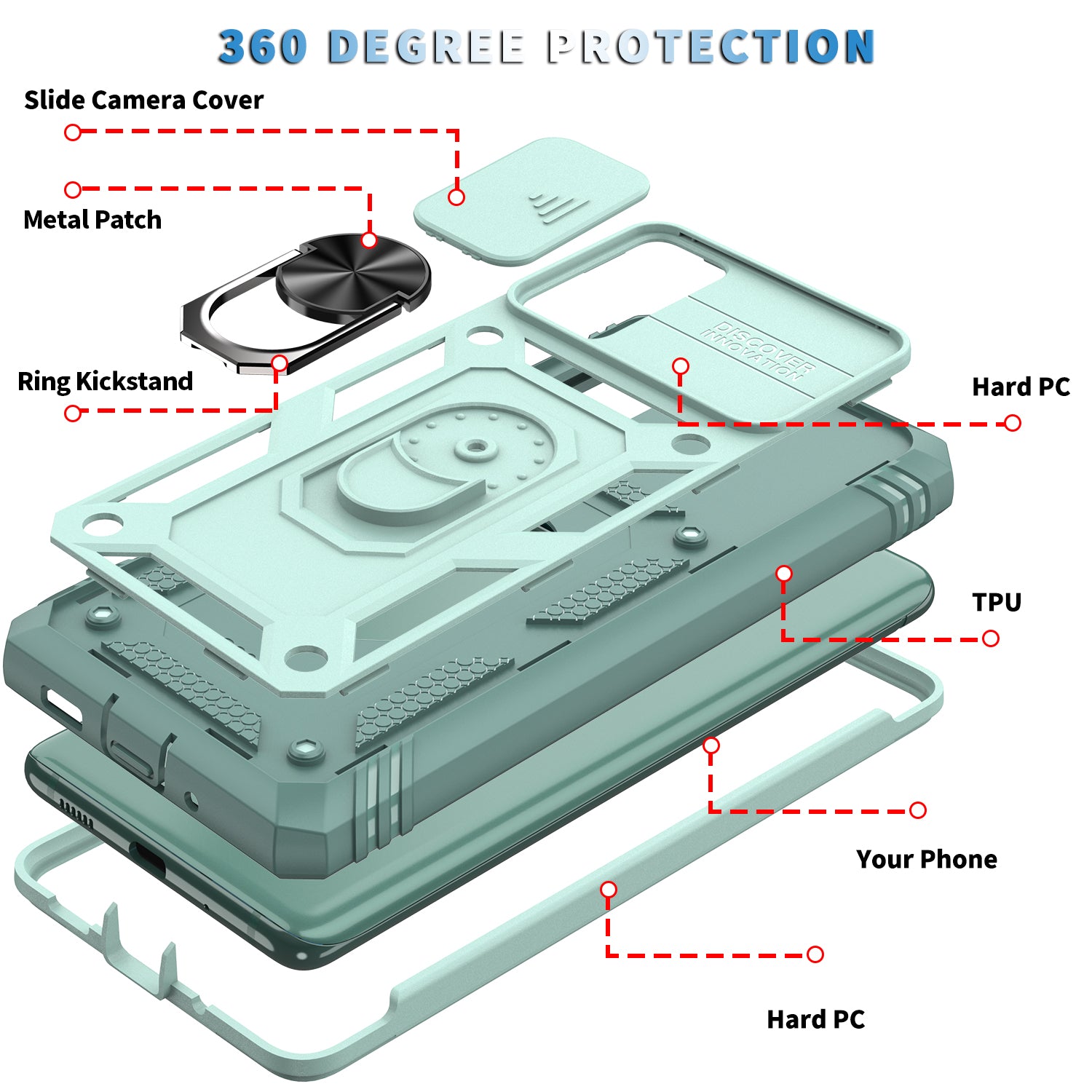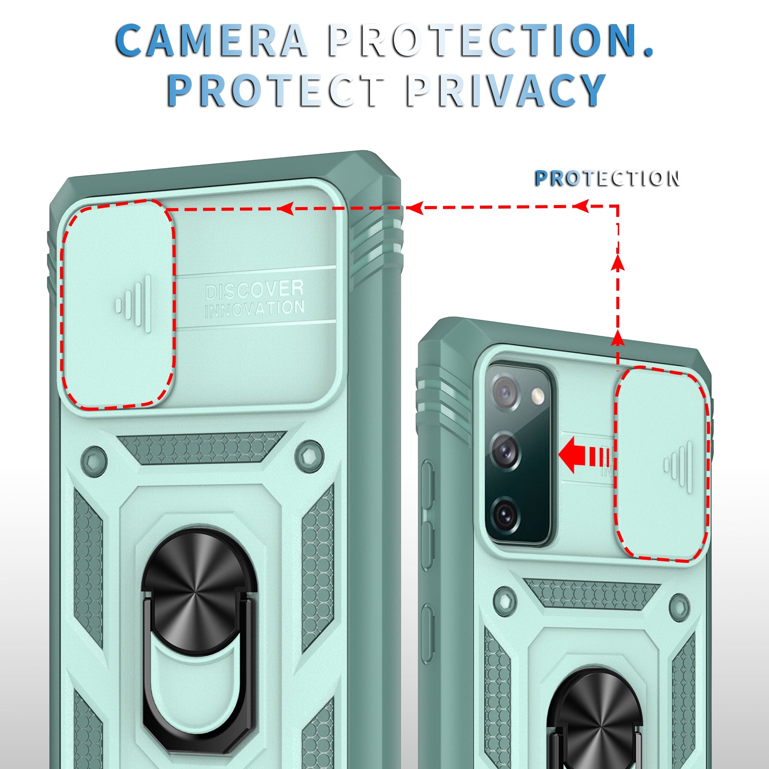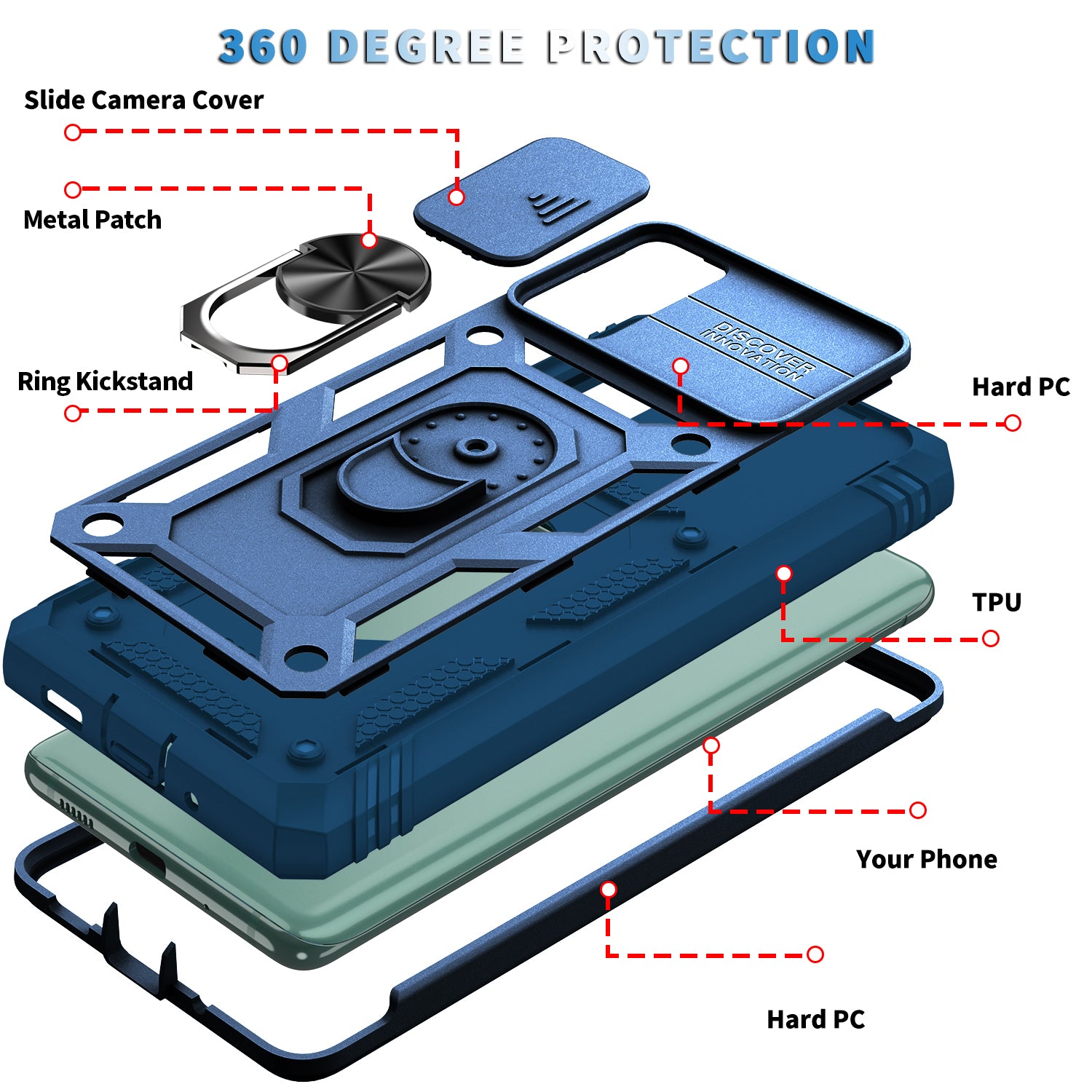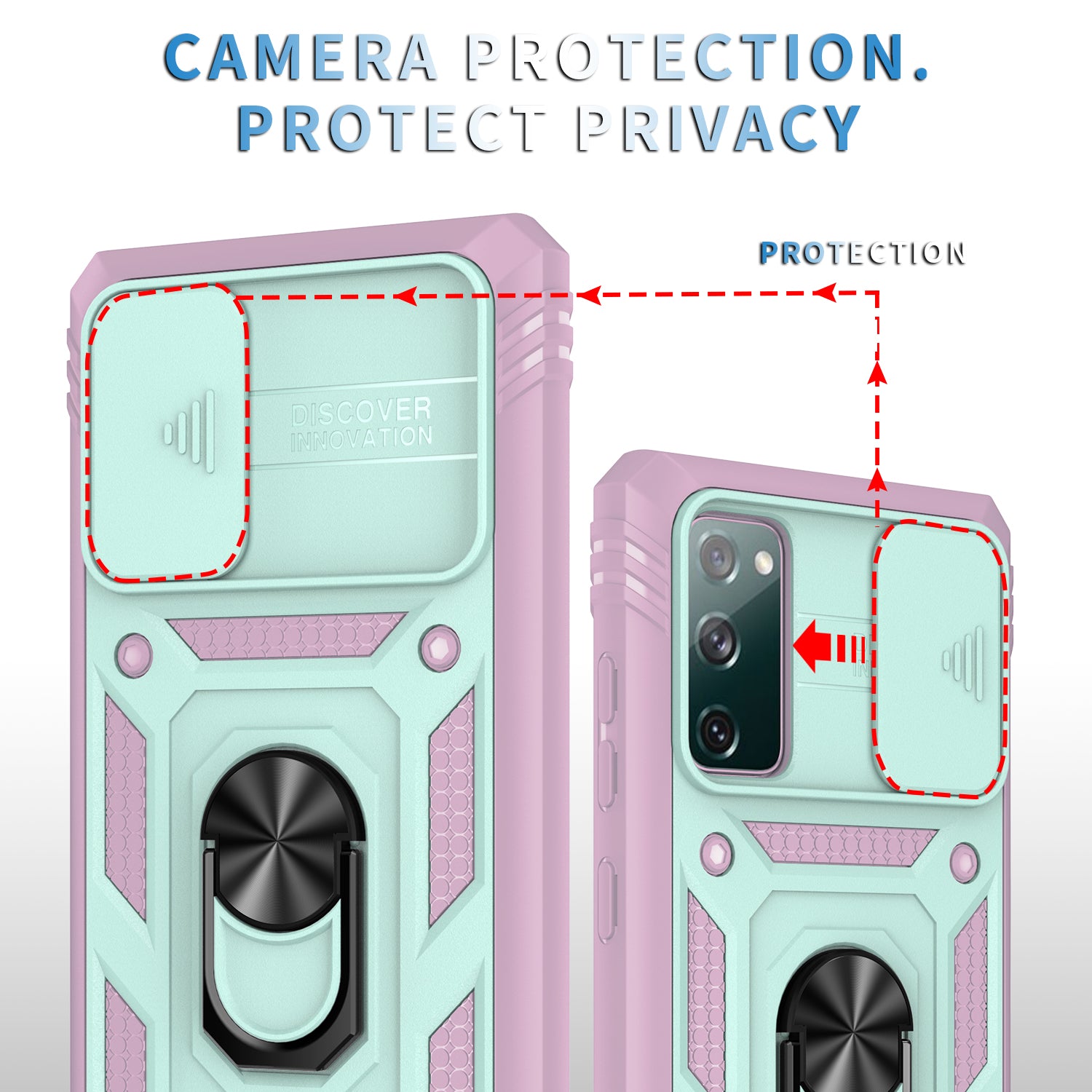 Camera Slider Design 3-in-1 TPU + PC + Metal Phone Cover Case for Samsung Galaxy S20 FE 2022/S20 FE 4G/S20 FE 5G/S20 Lite