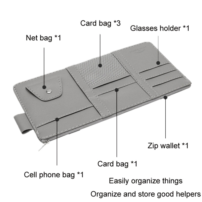 Car Sun Visor Decorative Storage Bag PU Leather Bill Glasses Cards CD Holder Storage Bag (No Zipper)