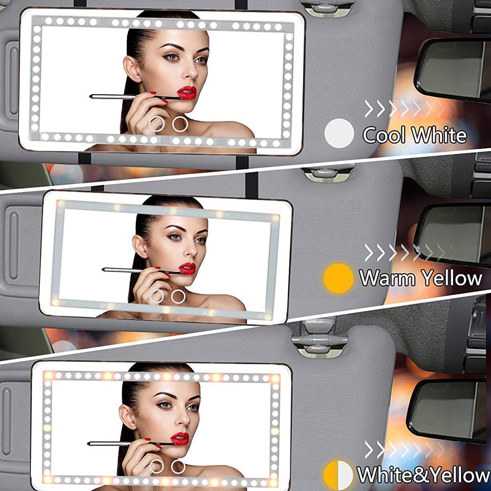 - The Car Visor Vanity Mirror has 48 cold white beams and 12 warm yellow beams, making it brighter and more energy-saving