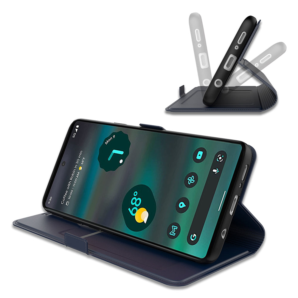 Card Holder Phone Case for Google Pixel 7a , PU Leather + TPU Full Protection Stand Cover