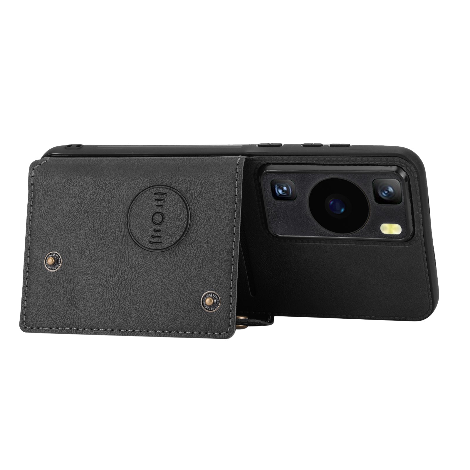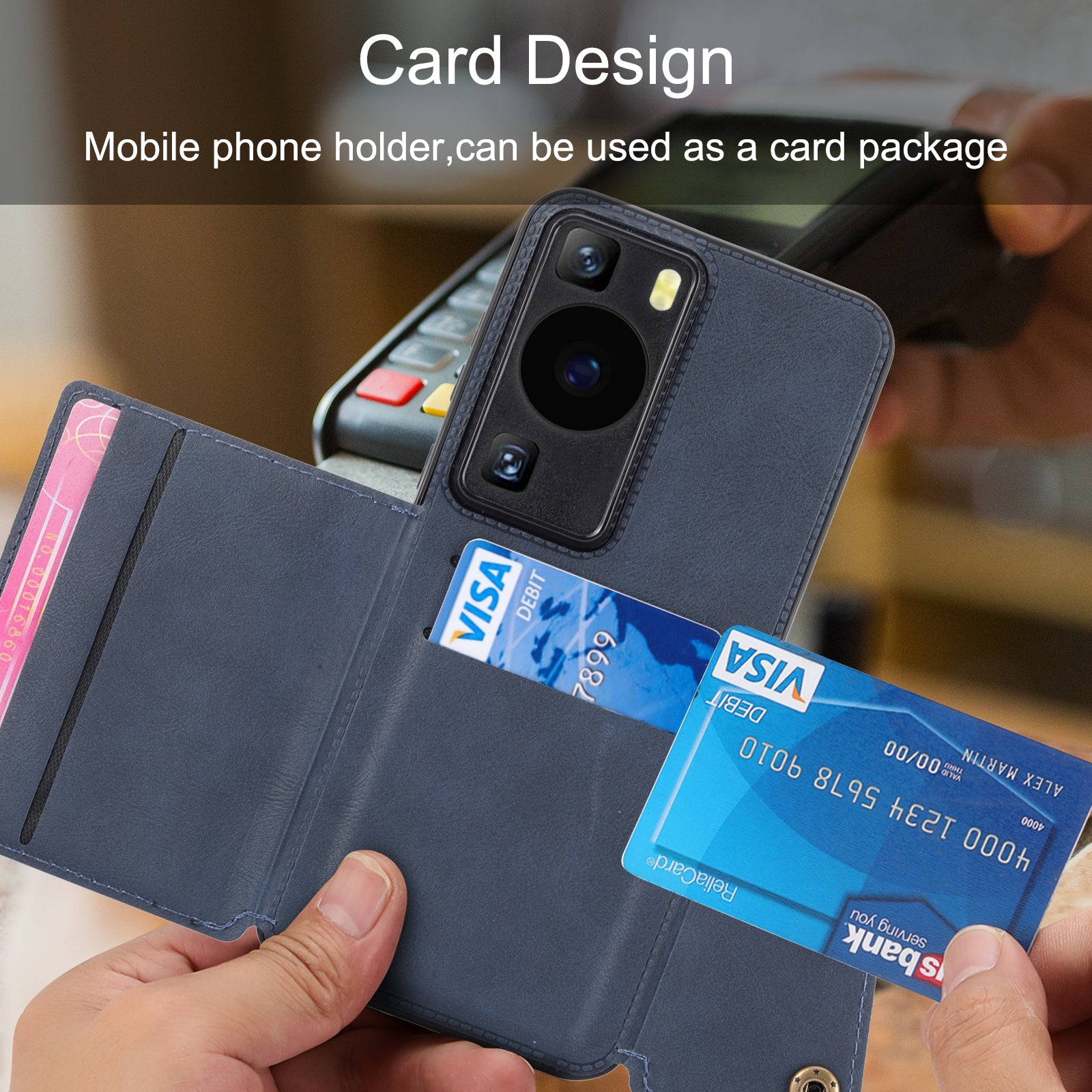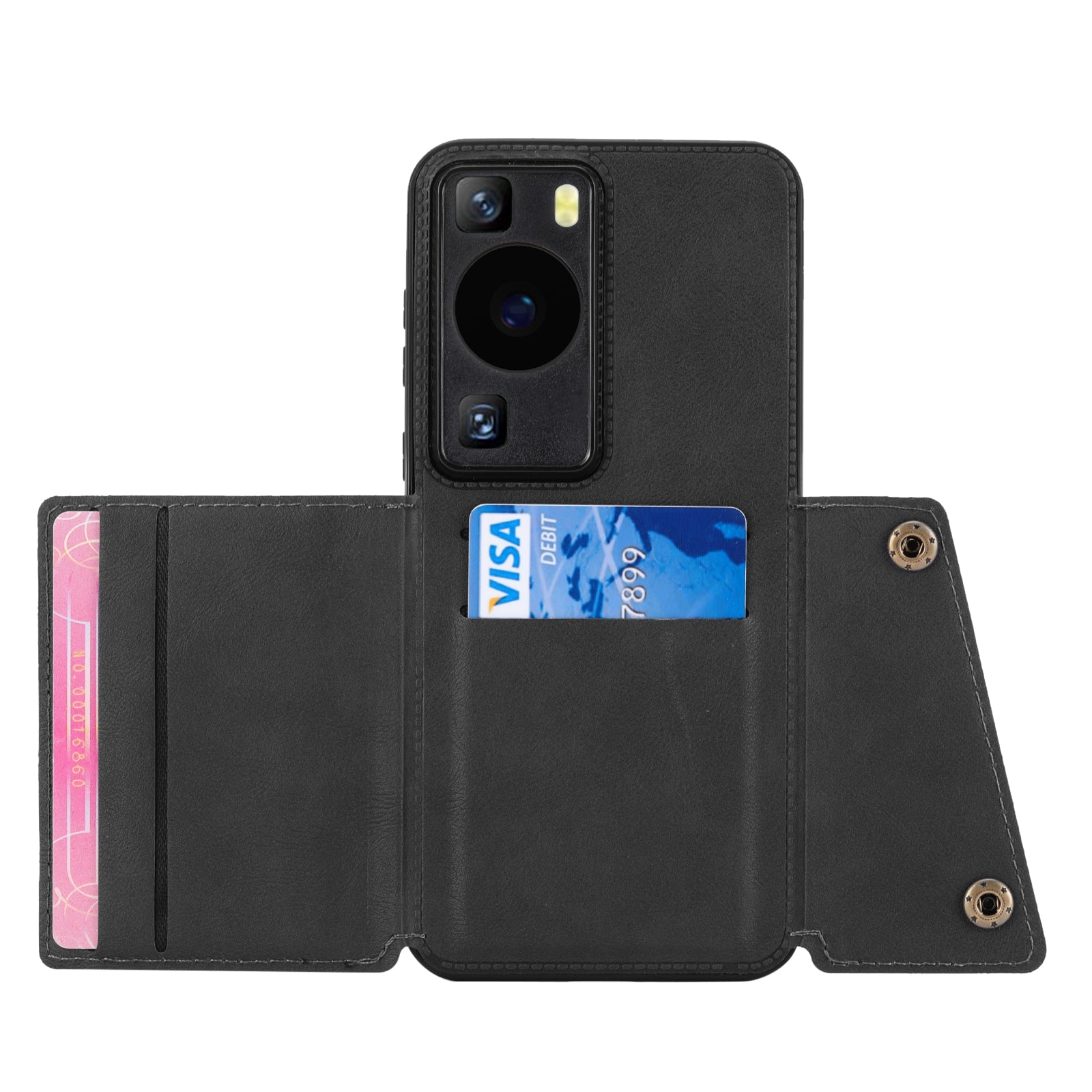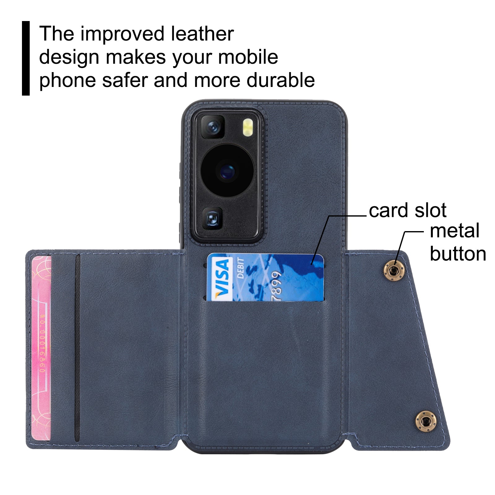 Card Holder Phone Case for Huawei P60 Kickstand PU Leather Coated TPU Back Cover