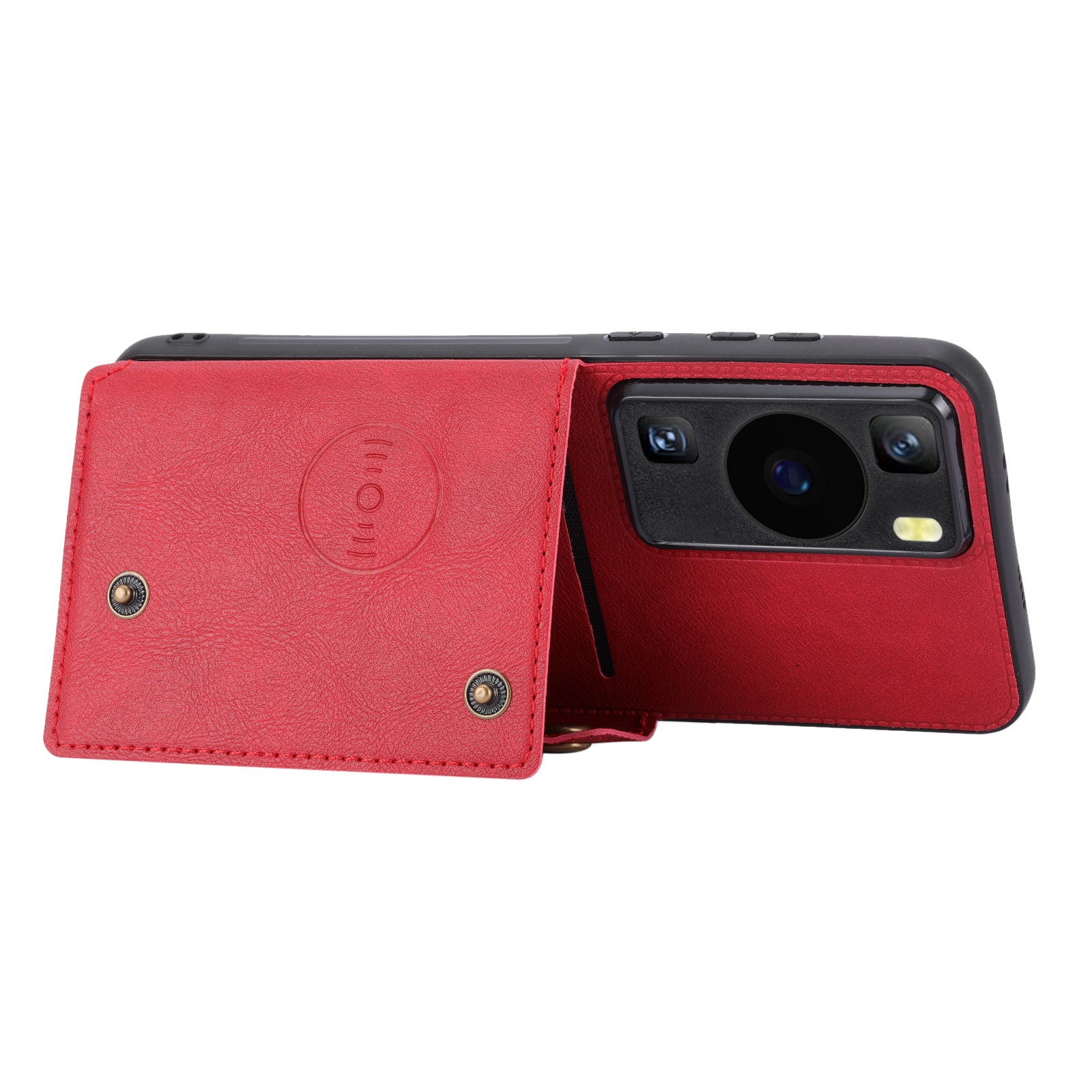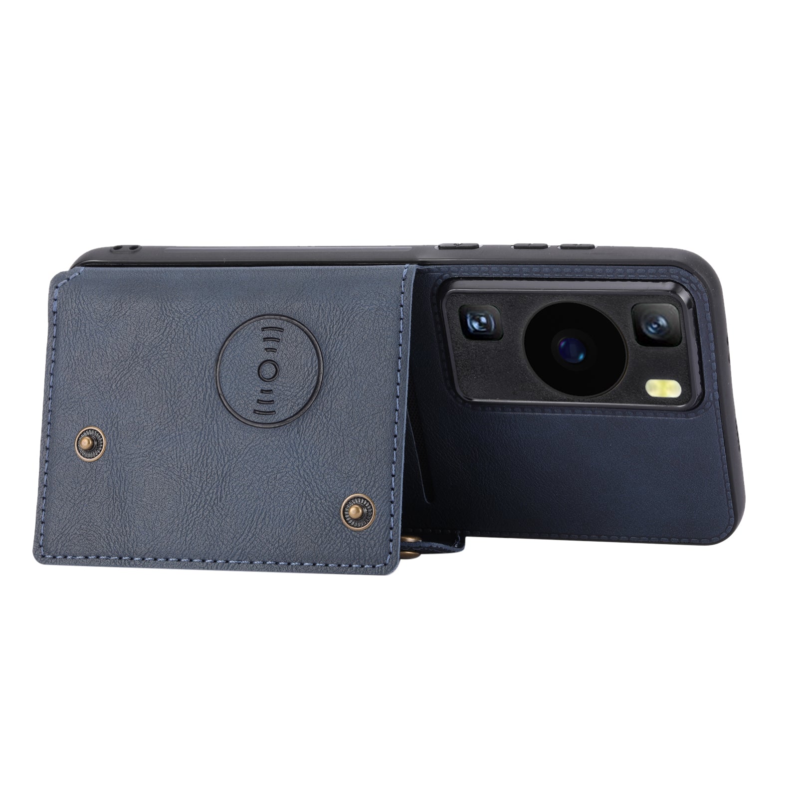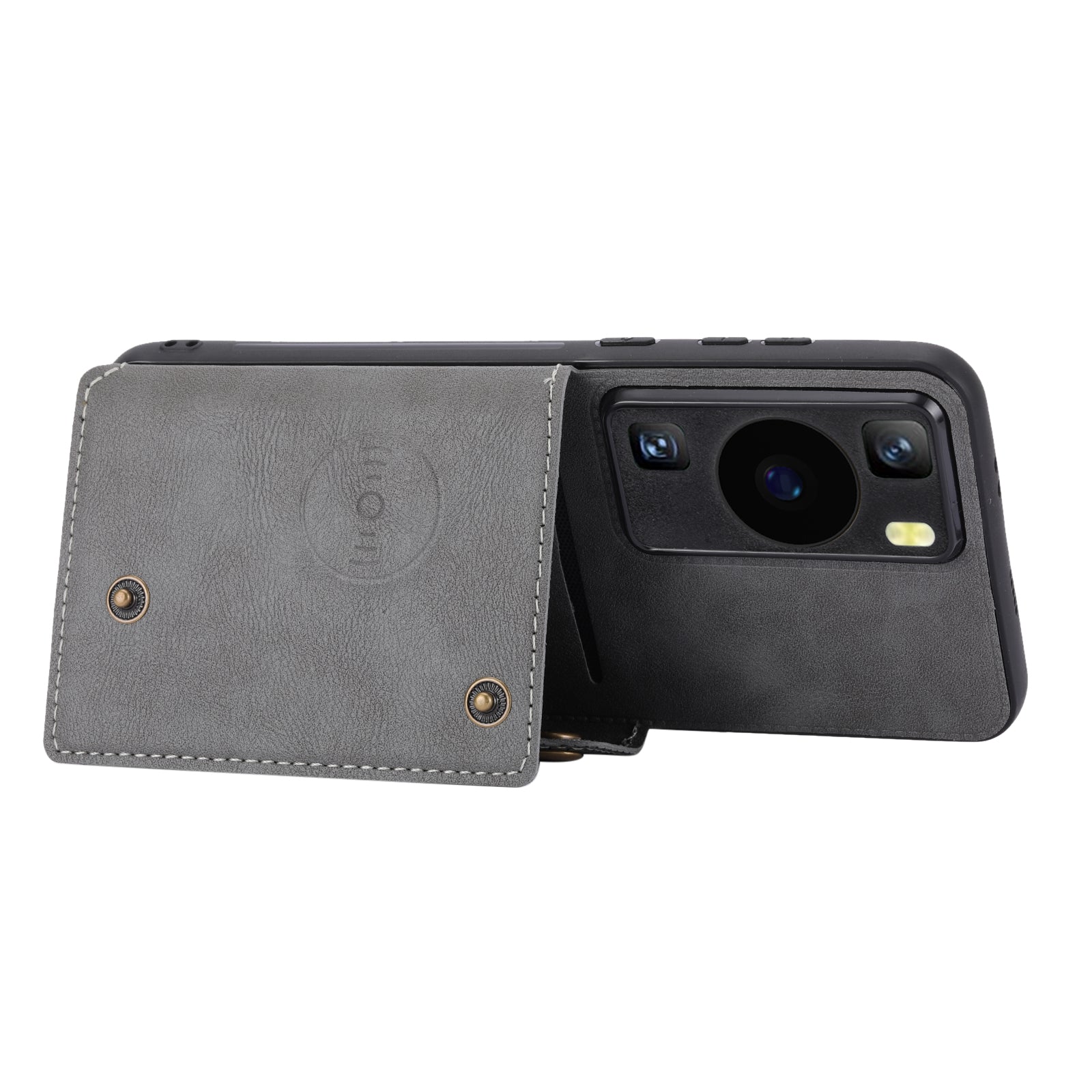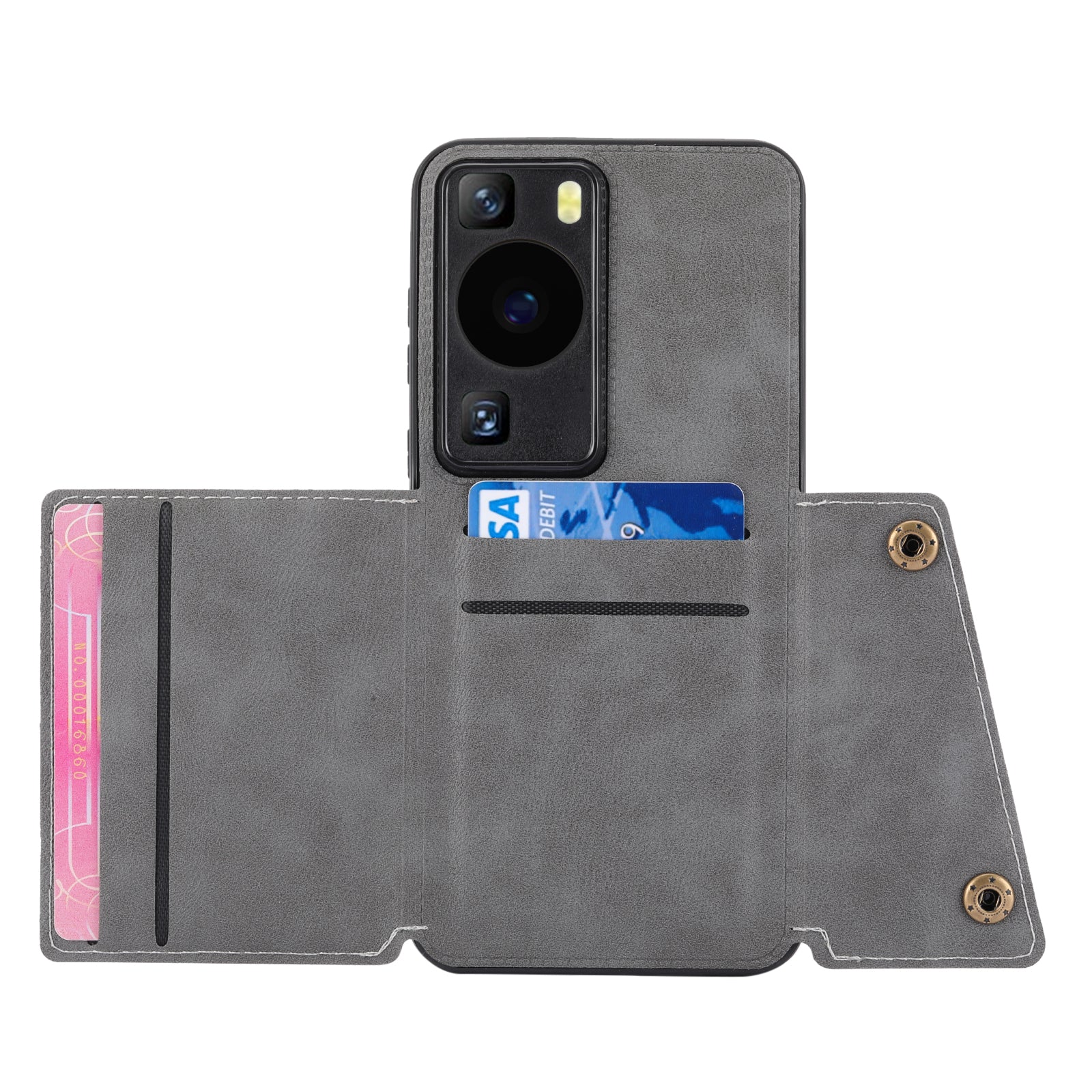 Card Holder Phone Case for Huawei P60 Kickstand PU Leather Coated TPU Back Cover