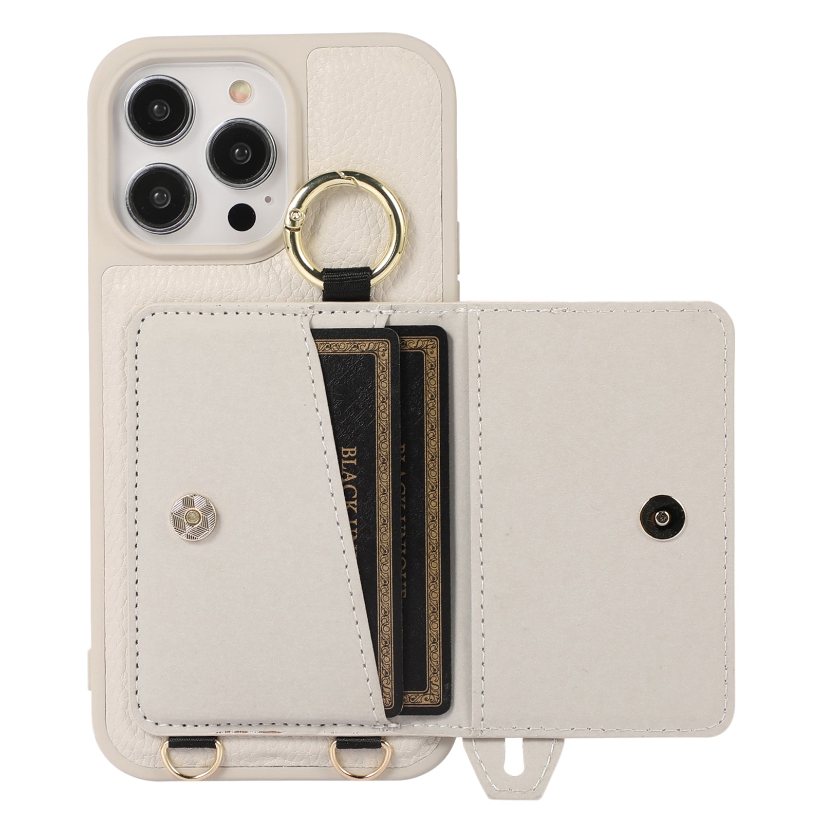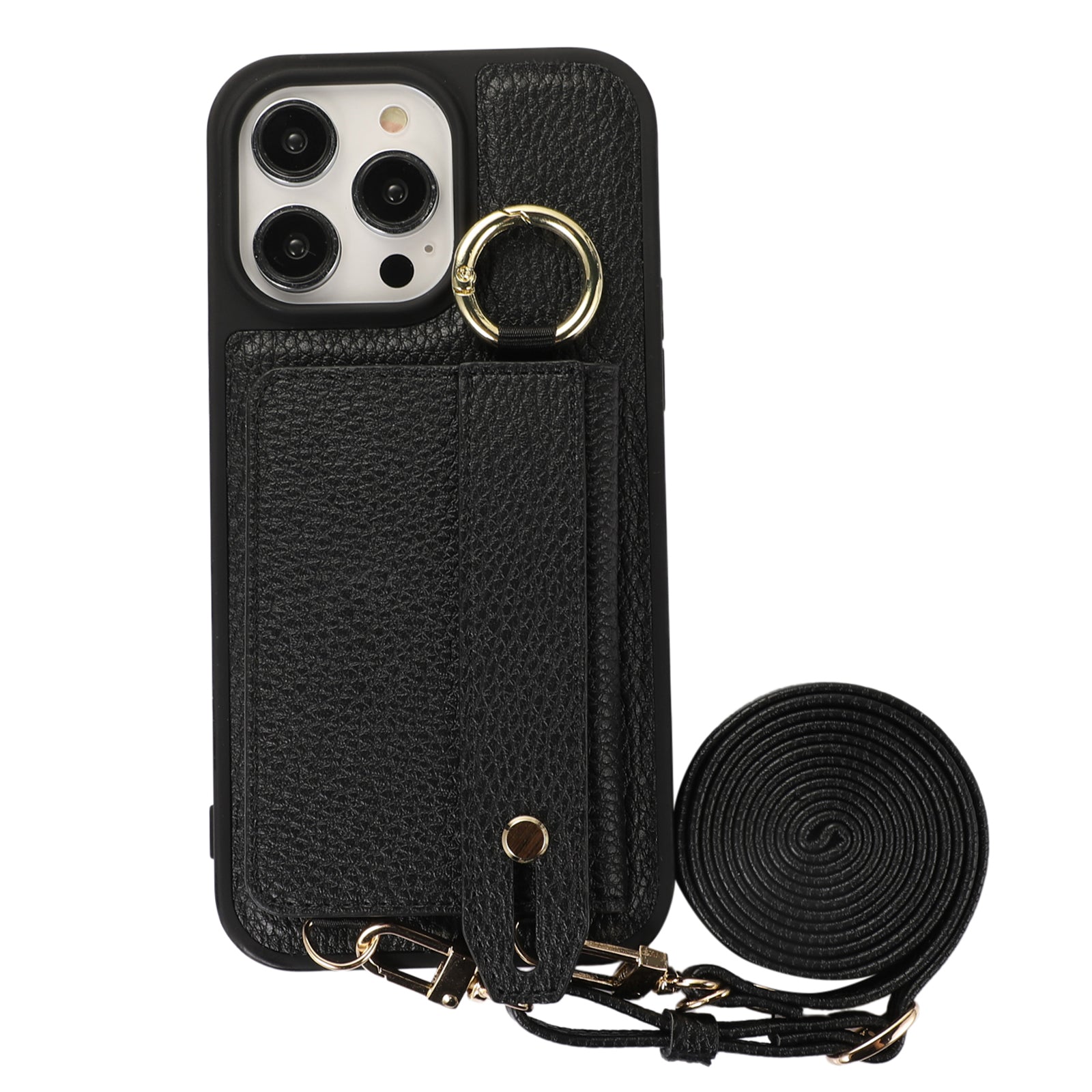 Card Holder Phone Cover for iPhone 12 Pro Max 6.7 inch Hand Strap Kickstand Leather+TPU Case with Shoulder Strap