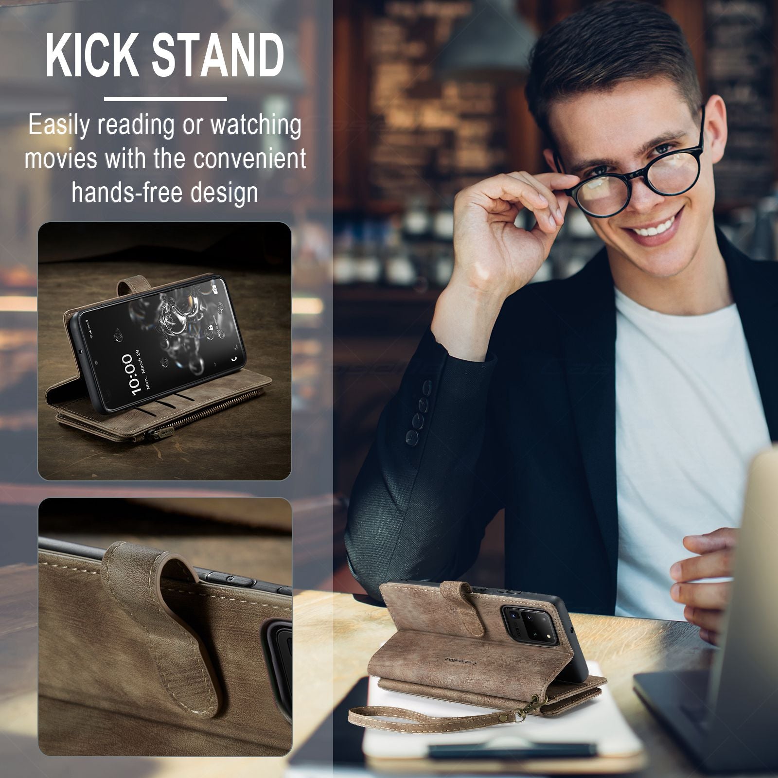 CASEME C30 Series Phone Wallet Case for Samsung Galaxy S20 Ultra 4G / 5G, Shockproof PU Leathe Zipper Pocket Mobile Phone Shell with Strap Card Holder