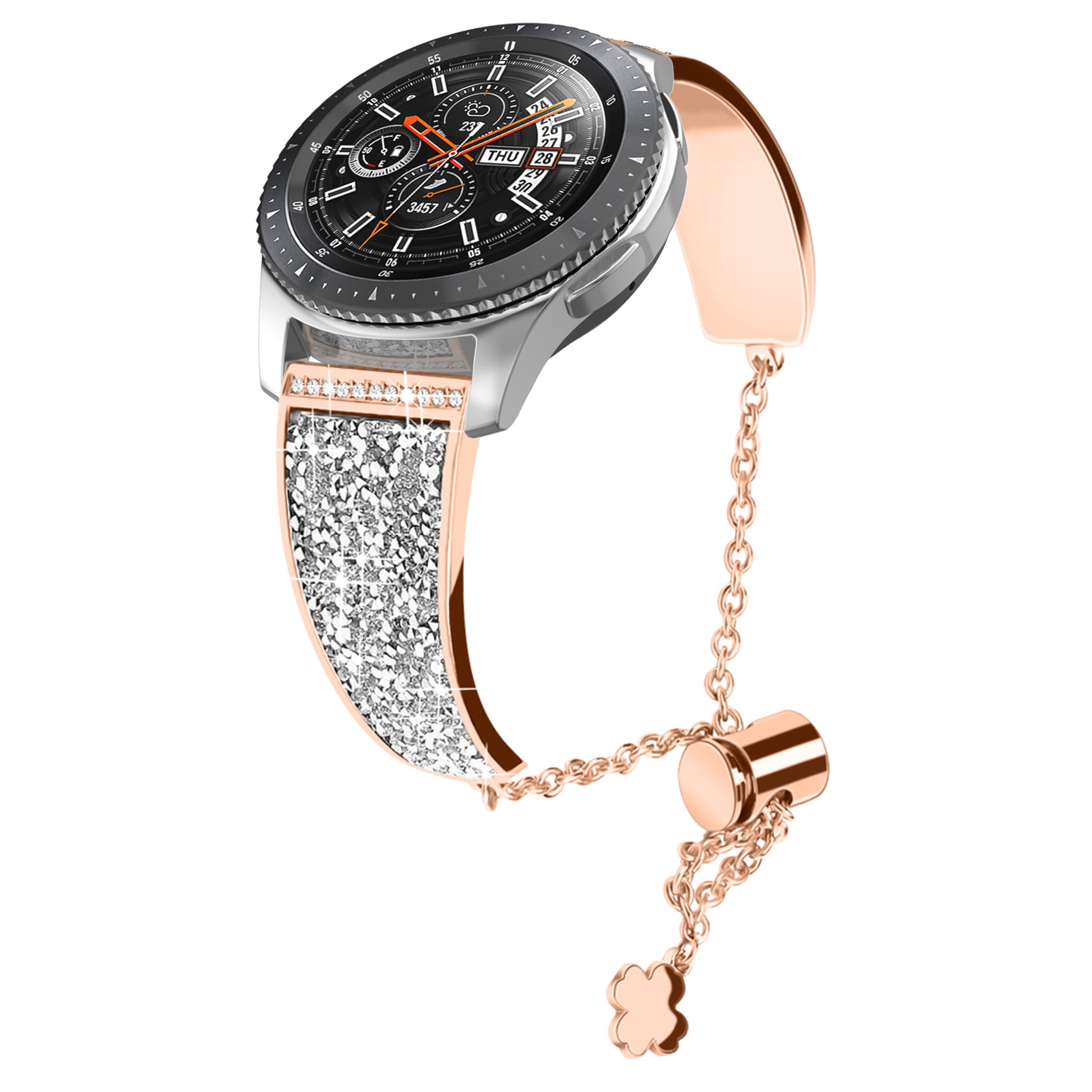 Chain Watch Band for Garmin Venu 2 / Forerunner 265 / 255 , Rhinestone Decor 22mm Metal Wristband Strap