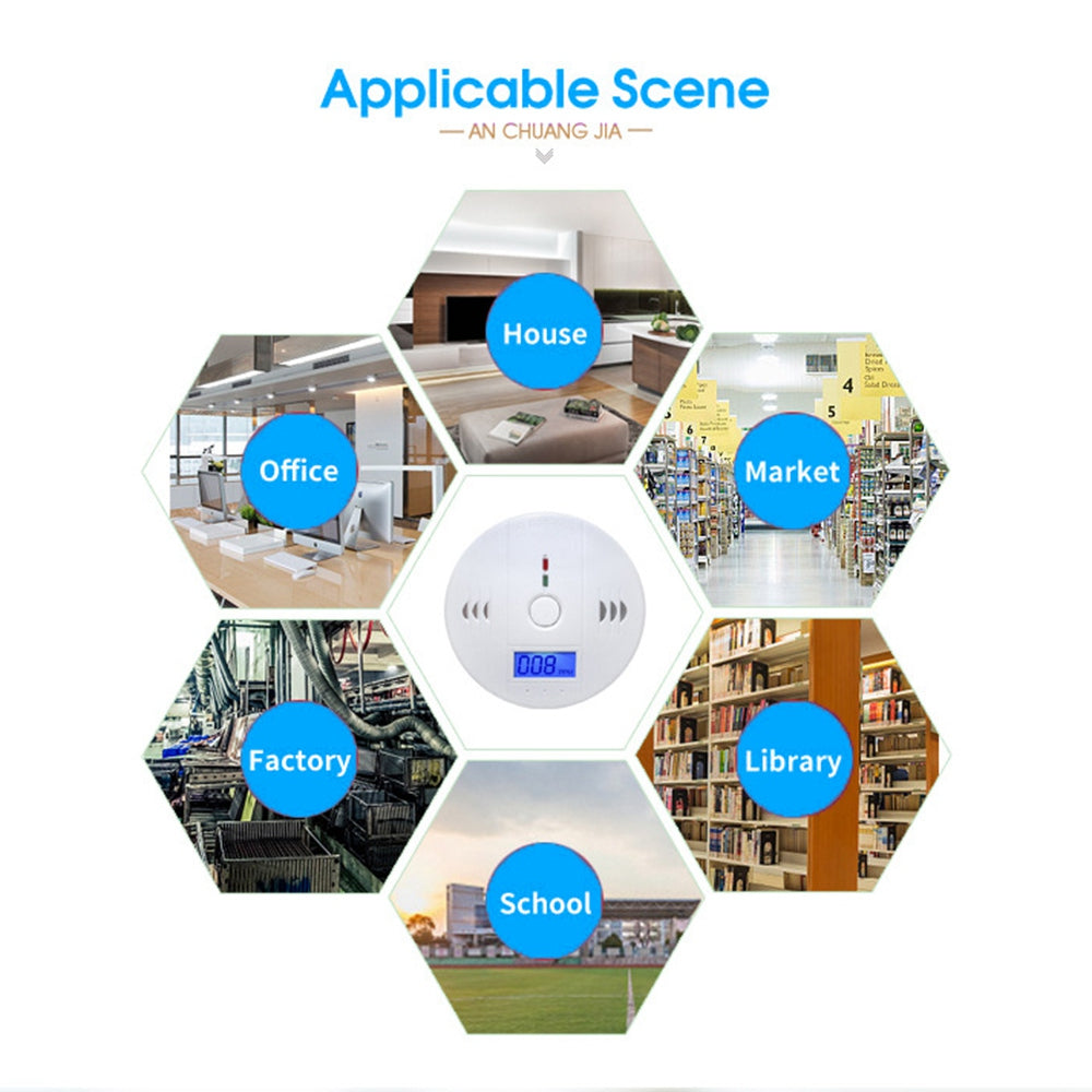 CO999 Carbon Monoxide Alarm Detector Replaceable Battery-Operated CO Alarm Detector with LCD Display for Home School Office (battery not included)