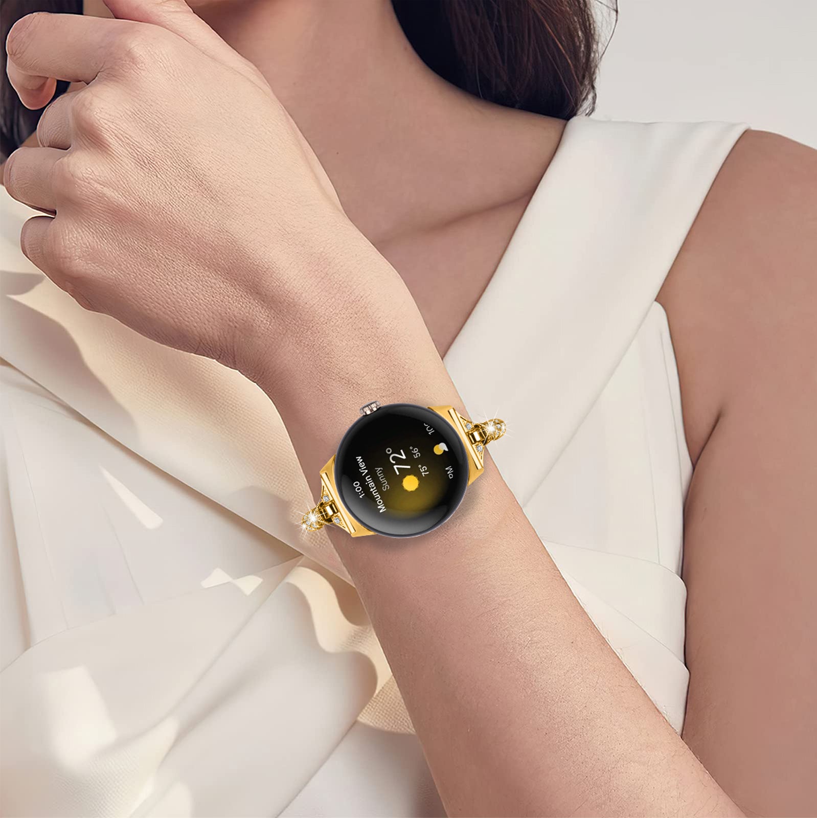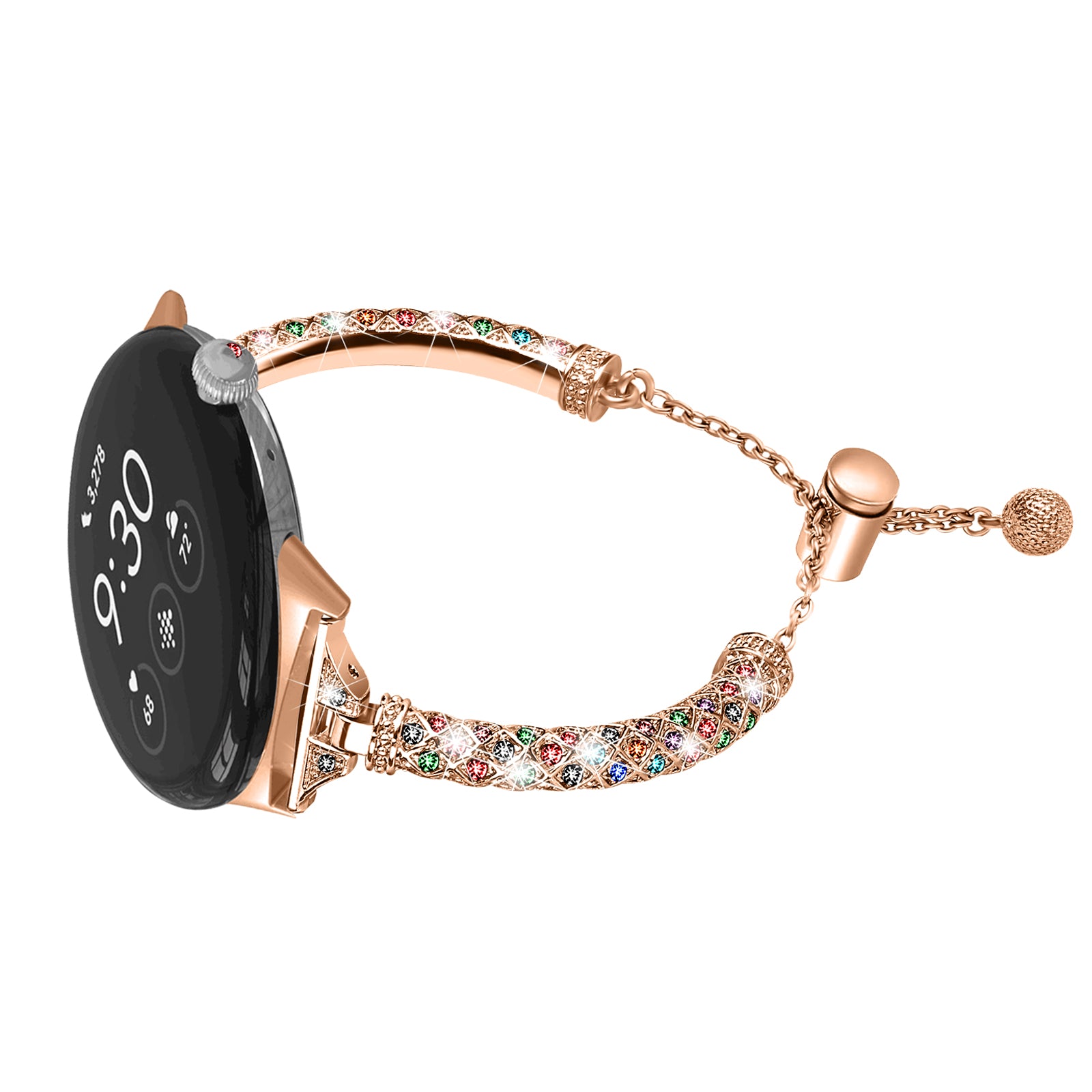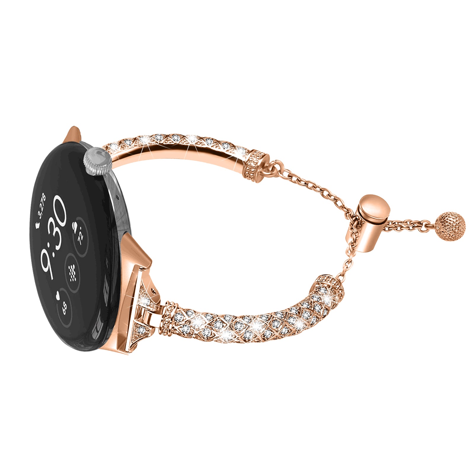 Copper Watch Band for Google Pixel Watch 2 / Pixel Watch , Bling Rhinestone Decor Bracelet Metal Strap